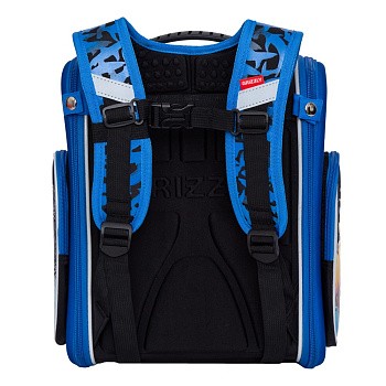 Светоотражающие элементы с 4-х сторон обеспечивают дополнительную безопасность. Жесткая анатомическая спинка и уникальные лямки из эластичного материала позволяют равномерно распределять нагрузку на спину и плечи ребенка. Лямки снабжены дополнительной нагрудной стяжкой.  Материал ранца с водо- и грязеотталкивающей пропиткой.  К ранцу прилагается обучающая брошюра по программе «GRIZZLY Здоровая Спина».