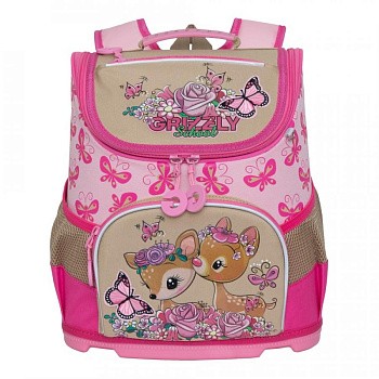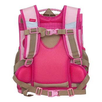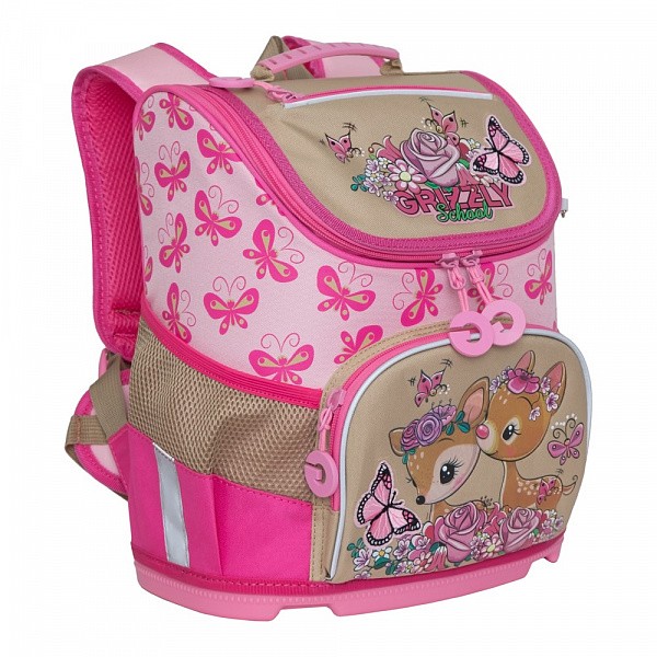 Светоотражающие элементы с 4-х сторон обеспечивают дополнительную безопасность. Анатомическая спинка со съемными подушками и лямки позволяют равномерно распределять нагрузку на спину и плечи ребенка. Лямки снабжены дополнительной нагрудной стяжкой. Материал ранца с водо- и грязеотталкивающей пропиткой.  К ранцу прилагается обучающая брошюра по программе «GRIZZLY Здоровая Спина».