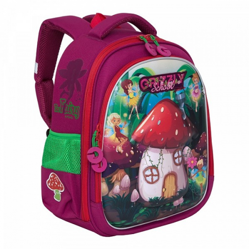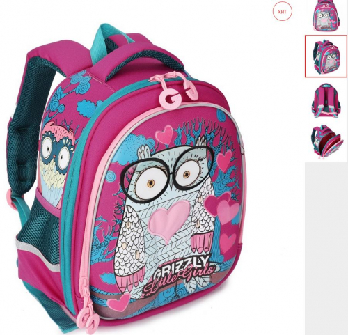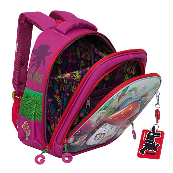 Формованный ранец GRIZZLY серии RAz для детей школьного возраста с анатомической  спинкой. Жесткая конструкция ранца создает надежную защиту для содержимого. У ранца два отделения, укрепленное дно на резиновых ножках, удобная ручка, дополнительная ручка-петля для и два вместительных боковых кармана для бутылочек с водой. Основное отделение состоит из трех отсеков для распределения учебных пособий форматом А4. Дополнительное переднее отделение оснащено съемным держателем для ключей и тремя карманами. Двунаправленные молнии с брендированными пуллерами на замках позволяют легко открывать и закрывать ранец. Светоотражающие элементы с 4-х сторон обезопасят ребенка. Жесткая анатомическая спинка и лямки анатомической формы позволяют равномерно распределять нагрузку на спину и плечи. Лямки снабжены дополнительной нагрудной стяжкой. Материал ранца с водо- и грязеотталкивающей пропиткой.  К ранцу прилагается обучающая брошюра по программе «GRIZZLY Здоровая Спина» и фирменный картхолдер Grizzly.
