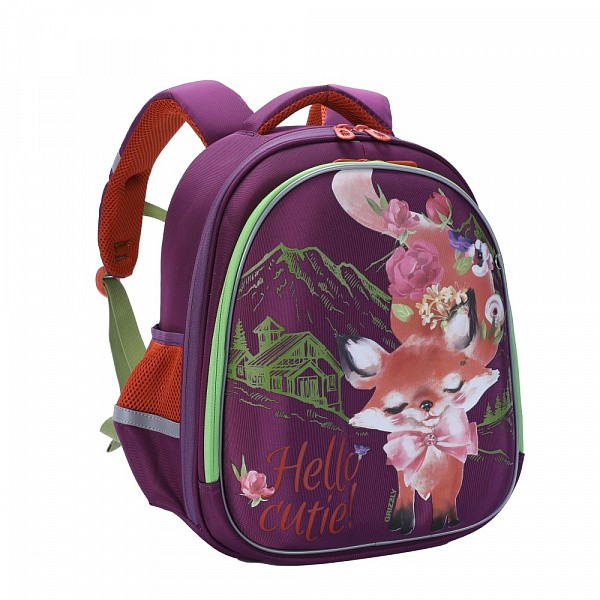 Формованный ранец GRIZZLY серии RAz для детей школьного возраста с анатомической  спинкой. Жесткая конструкция ранца создает надежную защиту для содержимого. У ранца два отделения, укрепленное дно на резиновых ножках, удобная ручка, дополнительная ручка-петля для и два вместительных боковых кармана для бутылочек с водой. Основное отделение состоит из трех отсеков для распределения учебных пособий форматом А4. Дополнительное переднее отделение оснащено съемным держателем для ключей и тремя карманами. Двунаправленные молнии с брендированными пуллерами на замках позволяют легко открывать и закрывать ранец. Светоотражающие элементы с 4-х сторон обезопасят ребенка. Жесткая анатомическая спинка и лямки анатомической формы позволяют равномерно распределять нагрузку на спину и плечи. Лямки снабжены дополнительной нагрудной стяжкой. Материал ранца с водо- и грязеотталкивающей пропиткой.  К ранцу прилагается обучающая брошюра по программе «GRIZZLY Здоровая Спина» и фирменный картхолдер Grizzly.