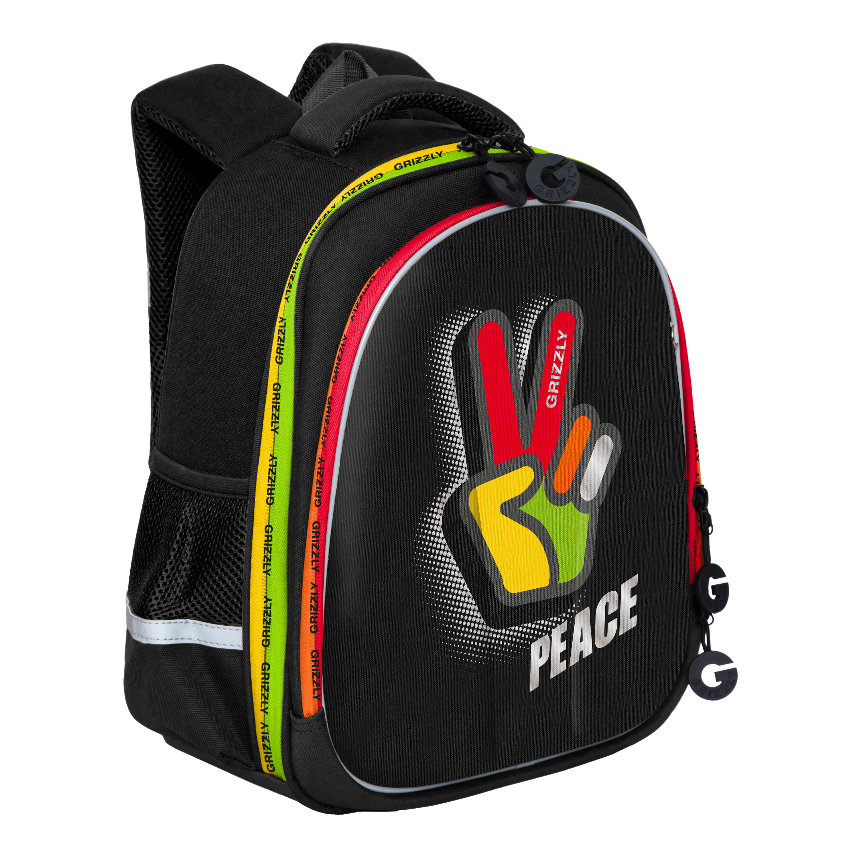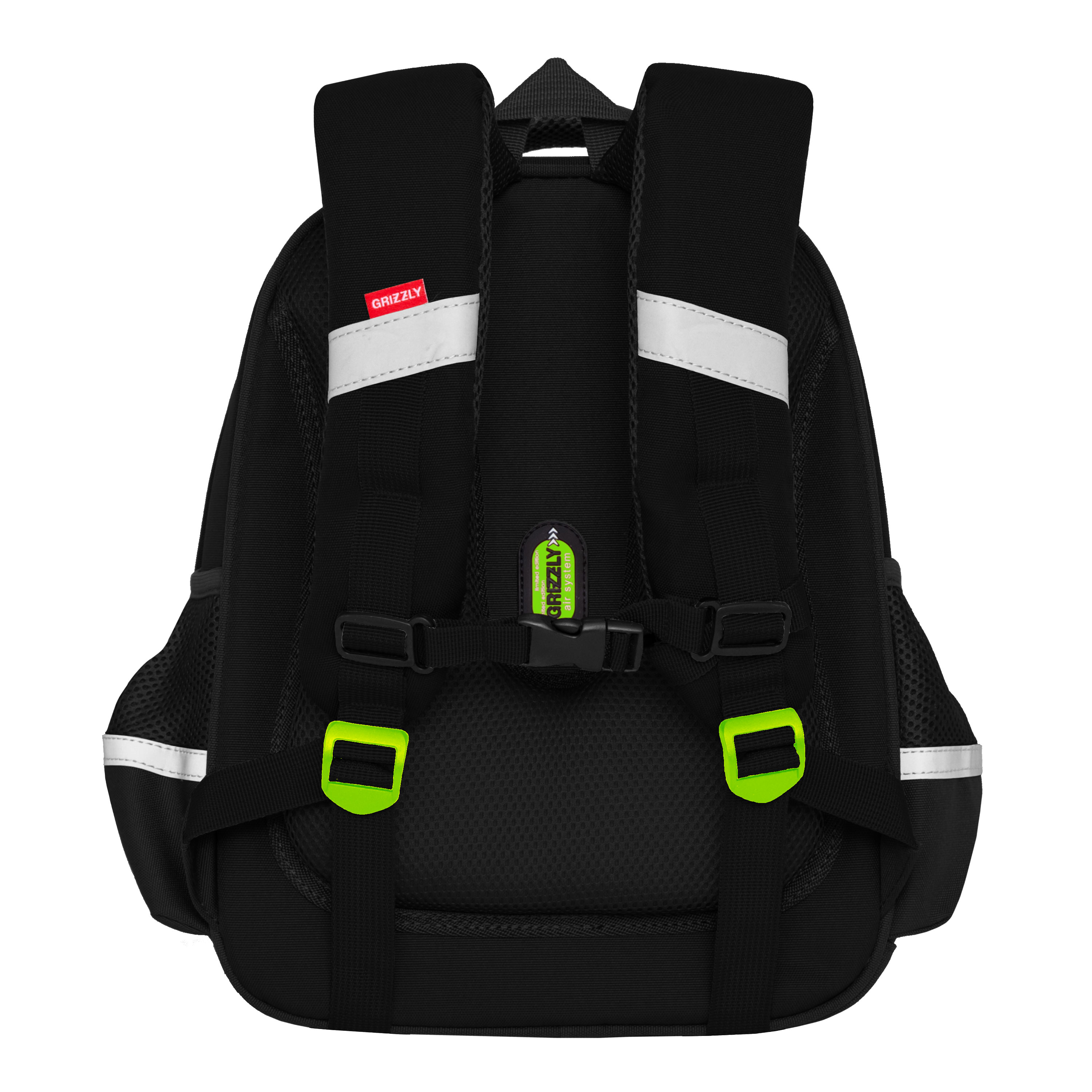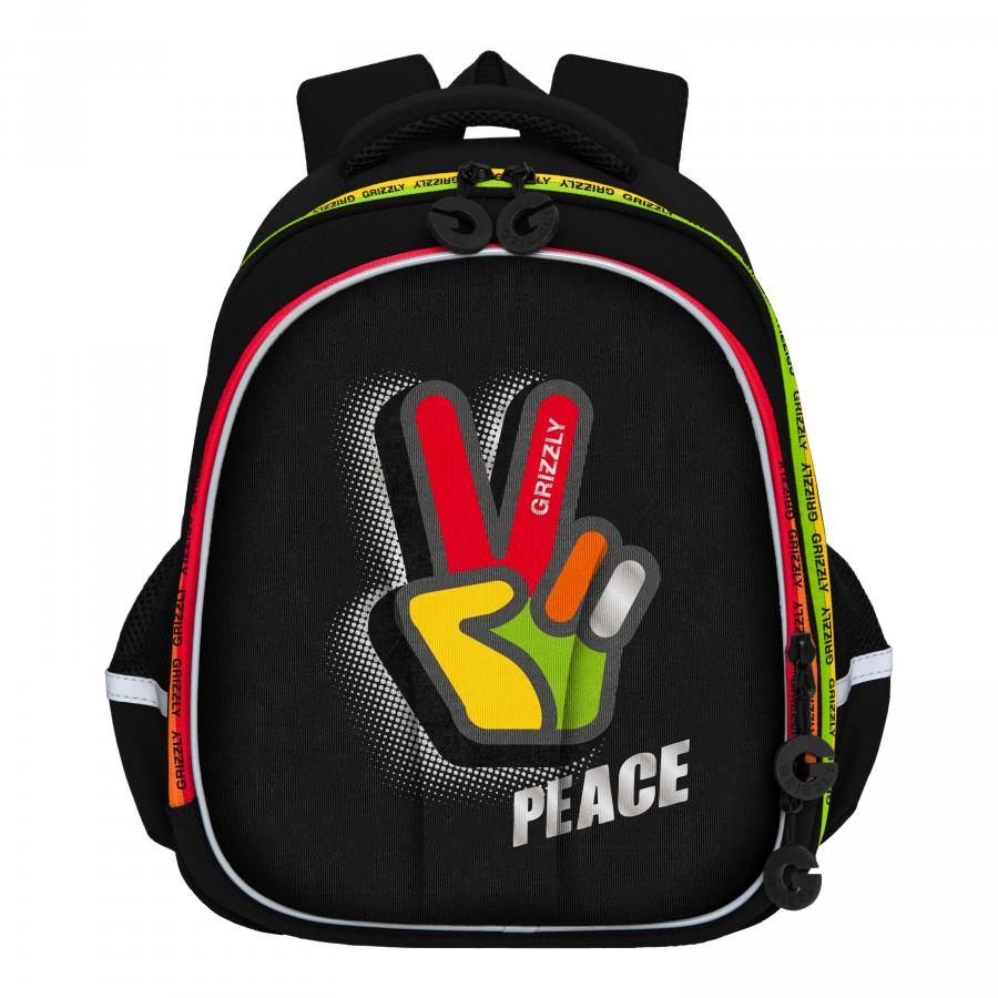 Формованный ранец GRIZZLY серии RAz для детей школьного возраста с анатомической  спинкой. Жесткая конструкция ранца, анатомическая спинка, лямки анатомической формы и нагрудная стяжка равномерно распределяют вес по спине ребенка. Конструкция ранца не деформируется при нагрузке и создает надежную защиту содержимого. У ранца два отделения, укрепленное дно на резиновых ножках, удобная ручка, дополнительная ручка-петля для и два вместительных боковых кармана для бутылочек с водой. Основное отделение состоит из трех отсеков для распределения учебных пособий форматом А4. Дополнительное переднее отделение оснащено съемным держателем для ключей и тремя карманами. Двунаправленные молнии с брендированными пуллерами на замках позволяют легко открывать и закрывать ранец. Светоотражающие элементы с 4-х сторон обезопасят ребенкаМатериал ранца с водо- и грязеотталкивающей пропиткой.  К ранцу прилагается обучающая брошюра по программе «GRIZZLY Здоровая Спина» и фирменный картхолдер Grizzly.