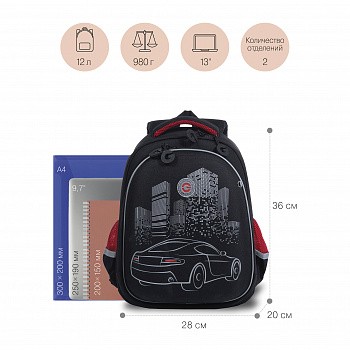 Уже с начальных классов детям нужно носить в школьном рюкзаке книги, тетради и сменку. Нагрузки большие и GRIZZLY помогает с ними справляться. Ранец серии RAz рассчитан на рост от 125 до 135 см.