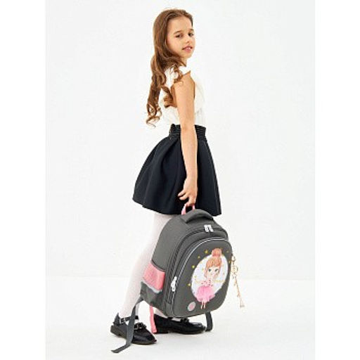 В него поместятся все школьные принадлежности. Основное отделение разбито на три отсека: для книг, тетрадей и папок А4. В дополнительное помещается сменка (есть три кармашка для мелочей). В боковых можно носить воду или перекус. Каждый предмет на своем месте. Ранец отлично подойдёт для первоклассника.