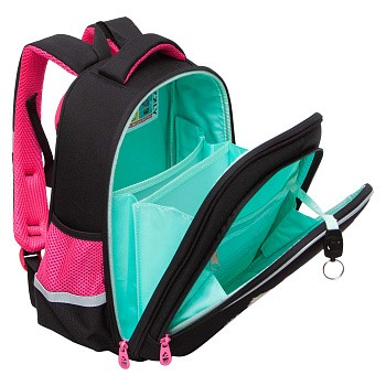 В него поместятся все школьные принадлежности. Основное отделение разбито на три отсека: для книг, тетрадей и папок А4. В дополнительное помещается сменка (есть три кармашка для мелочей). В боковых можно носить воду или перекус. Каждый предмет на своем месте. Ранец отлично подойдёт для первоклассника.