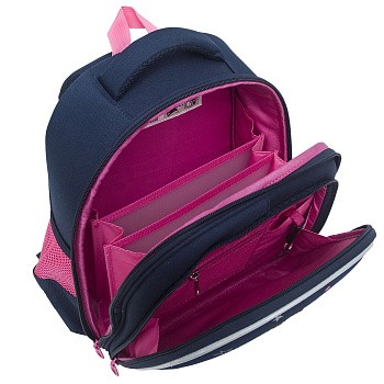 В него поместятся все школьные принадлежности. Основное отделение разбито на три отсека: для книг, тетрадей и папок А4. В дополнительное помещается сменка (есть три кармашка для мелочей). В боковых можно носить воду или перекус. Каждый предмет на своем месте. Ранец отлично подойдёт для первоклассника.