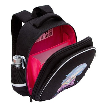 В него поместятся все школьные принадлежности. Основное отделение разбито на три отсека: для книг, тетрадей и папок А4. В дополнительное помещается сменка (есть три кармашка для мелочей). В боковых можно носить воду или перекус. Каждый предмет на своем месте. Ранец отлично подойдёт для первоклассника.