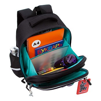 В него поместятся все школьные принадлежности. Основное отделение разбито на три отсека: для книг, тетрадей и папок А4. В дополнительное помещается сменка (есть три кармашка для мелочей). В боковых можно носить воду или перекус. Каждый предмет на своем месте. Ранец отлично подойдёт для первоклассника.