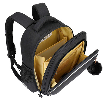 В него поместятся все школьные принадлежности. Основное отделение разбито на три отсека: для книг, тетрадей и документов формата А4. В дополнительное помещается сменка (есть три кармашка для мелочей). В боковых можно носить воду или перекус. Каждый предмет на своем месте. Ранец отлично подойдёт для первоклассника.