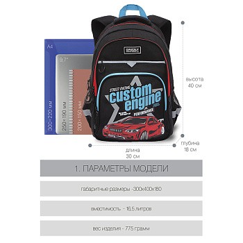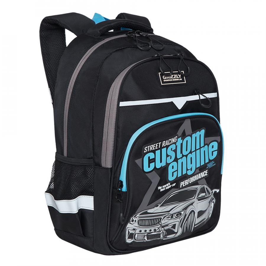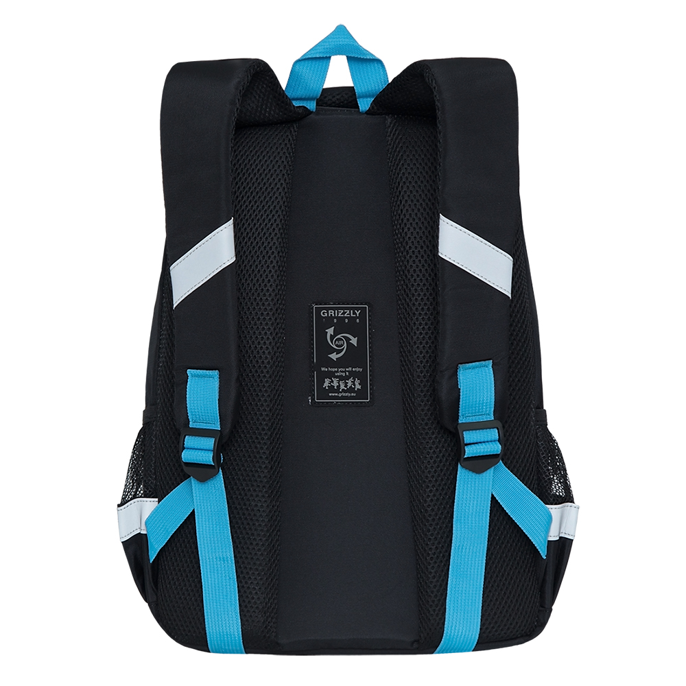 Рюкзак разработан для учащихся начальной и средней школы. Анатомическая спинка и удобные лямки позволяют равномерно распределять нагрузку на спину и плечи. Материал рюкзака с водо- и грязеотталкивающей пропиткой. Рюкзак очень хорошо оснащен, имеет два вместительных отделения для учебных пособий форматом А4. В основном отделении есть карман для планшета или небольшого ноутбука 13". В два передних кармана на молнии поместится куча мелочей, один их них оснащен съемным держателем для ключей и тремя карманами. Двунаправленные реверсные молнии с брендированными пуллерами на замках позволяют легко открывать и закрывать рюкзак. У рюкзака удобная ручка для переноски, дополнительная ручка-петля и два боковых кармана для бутылочки с водой и разных мелочей. Светоотражающие элементы с 4-х сторон обеспечивают дополнительную безопасность. К рюкзаку прилагается обучающая брошюра по программе "GRIZZLY Здоровая Спина".