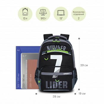 Много карманов внутри и снаружи, для ключей, брелков, кошелька, карман для ноутбука 13". Со всех сторон сумки есть световые отражатели - ребенка в темноте точно заметят. А за счет водо- и грязеотталкивающей пропитки портфель долго остается как новый. Если он все же чем-то испачкался, мы рекомендуем ручную стирку в холодной воде без отжима при температуре 30 градусов. С уважением, команда GRIZZLY!