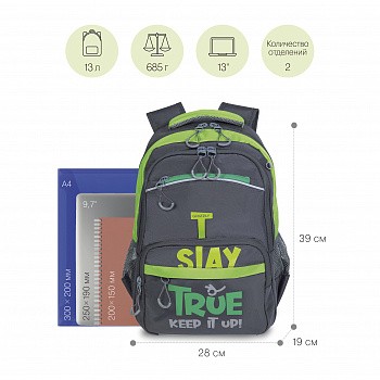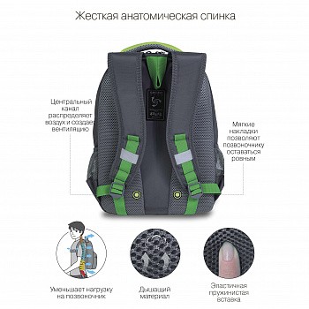 Подростку приходится носить с собой в школу столько вещей, что не каждый взрослый потянет? Анатомический рюкзак GRIZZLY помогает сохранить здоровую спину. Эта модель с твердым дном выполнена из прочного плотного полиэстера и рассчитана на рост от 125 до 140 см. Как бы подросток не разложил вещи внутри, рюкзак отлично держит форму и не перекашивается. Накладки анатомической спинки поддерживают позвоночник в правильном положении — равномернее распределяется вес. Рюкзак вместительный — внутри помещается все, что может понадобиться в школе. Есть два больших отделения: одно для книг, документов и пособий формата А4, другое для принадлежностей. Много карманов внутри и снаружи, карман для ноутбука 13". Со всех сторон есть отражатели — ребенка в темноте точно заметят. А за счет водо- и грязеотталкивающей пропитки рюкзак долго остается как новый. Если он все же чем-то испачкался, мы рекомендуем ручную стирку в холодной воде. С уважением, команда GRIZZLY