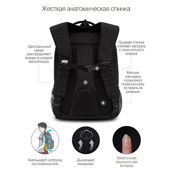 Анатомический рюкзак GRIZZLY, разработанный для школьников ростом от 125 до 140 см, помогает сохранить здоровую спину. Эта модель с твердым дном выполнена из прочного плотного полиэстера, поэтому рюкзак отлично держит форму и не перекашивается. Накладки анатомической спинки и нагрудная стяжка со свистком поддерживают позвоночник в правильном положении — равномернее распределяется вес. Рюкзак вместительный — внутри помещается все, что может понадобиться в школе. Есть два больших отделения: одно для книг, документов и пособий формата А4, другое для принадлежностей. Много карманов внутри и снаружи, карман для ноутбука 13". Со всех сторон есть отражатели — ребенка в темноте точно заметят. А за счет водо- и грязеотталкивающей пропитки рюкзак долго остается как новый. Если он все же чем-то испачкался, мы рекомендуем ручную стирку в холодной воде. Если вам нужен вместительный и практичный рюкзак для школьника, добавляйте эту модель в корзину.