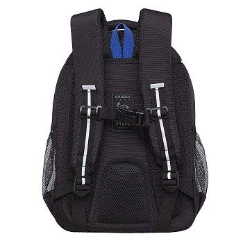 Рюкзак разработан для учащихся начальной и средней школы. Анатомическая спинка и удобные лямки позволяют равномерно распределять нагрузку на спину и плечи. Лямки снабжены дополнительной нагрудной стяжкой со свистком, чтобы рюкзак держался на зимней объемной одежде. Материал рюкзака с водо- и грязеотталкивающей пропиткой. Рюкзак очень хорошо оснащен, имеет два отделения для учебных пособий форматом А4. В основном отделении есть карман для планшета или небольшого ноутбука 13". Дополнительное переднее отделение оснащено съемным держателем для ключей и тремя карманами. Двунаправленные реверсные молнии с брендированными пуллерами на замках позволяют легко открывать и закрывать рюкзак. У рюкзака удобная ручка для переноски, дополнительная ручка-петля и два боковых кармана для бутылочки с водой. Светоотражающие элементы с 4-х сторон обеспечивают дополнительную безопасность. К рюкзаку прилагается обучающая брошюра по программе «GRIZZLY Здоровая Спина».