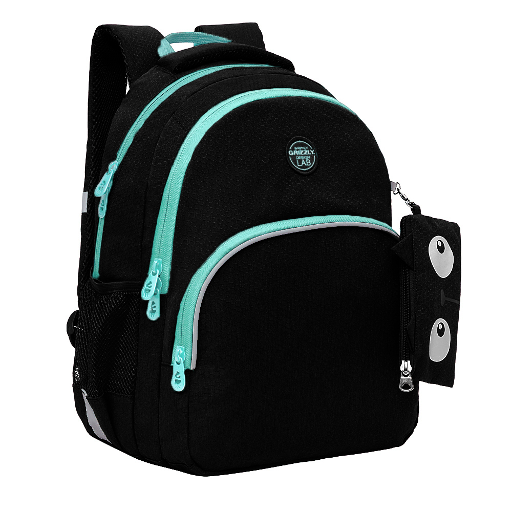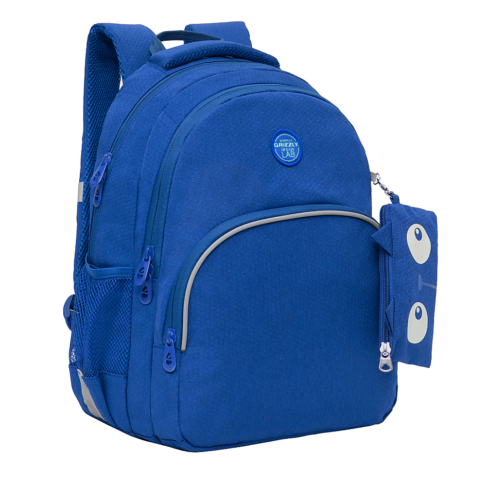 Рюкзак разработан для учащихся начальной и средней школы. Анатомическая спинка, удобные лямки и нагрудная стяжка-фиксатор позволяют равномерно распределять нагрузку на спину и плечи. Материал рюкзака с водо- и грязеотталкивающей пропиткой.  Рюкзак очень хорошо оснащен, имеет два вместительных отделения для учебных пособий форматом А4. В основном отделении есть карман для планшета или небольшого ноутбука 13". Дополнительное переднее отделение оснащено съемным держателем для ключей и тремя карманами. Двунаправленные реверсные молнии с брендированными пуллерами на замках позволяют легко открывать и закрывать рюкзак. У рюкзака внешний карман на молнии, удобная ручка для переноски, дополнительная ручка-петля и два боковых кармана для бутылочки с водой. Светоотражающие элементы с 4-х сторон обеспечивают дополнительную безопасность. К рюкзаку прилагается обучающая брошюра по программе «GRIZZLY Здоровая Спина».