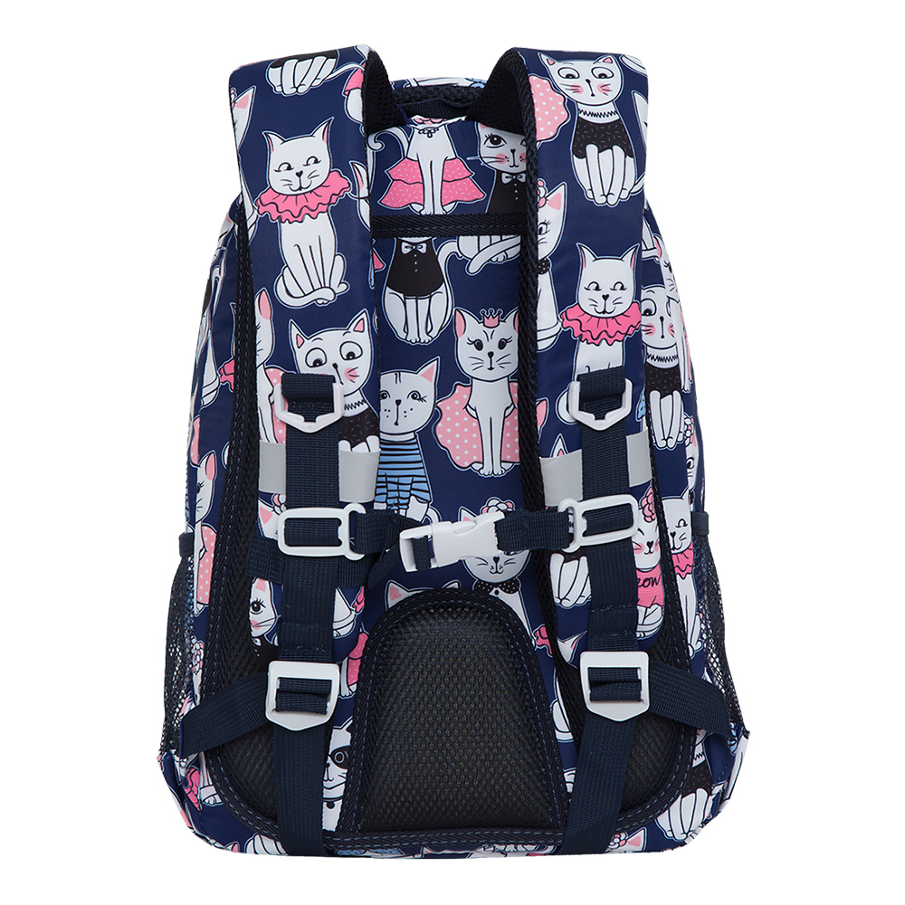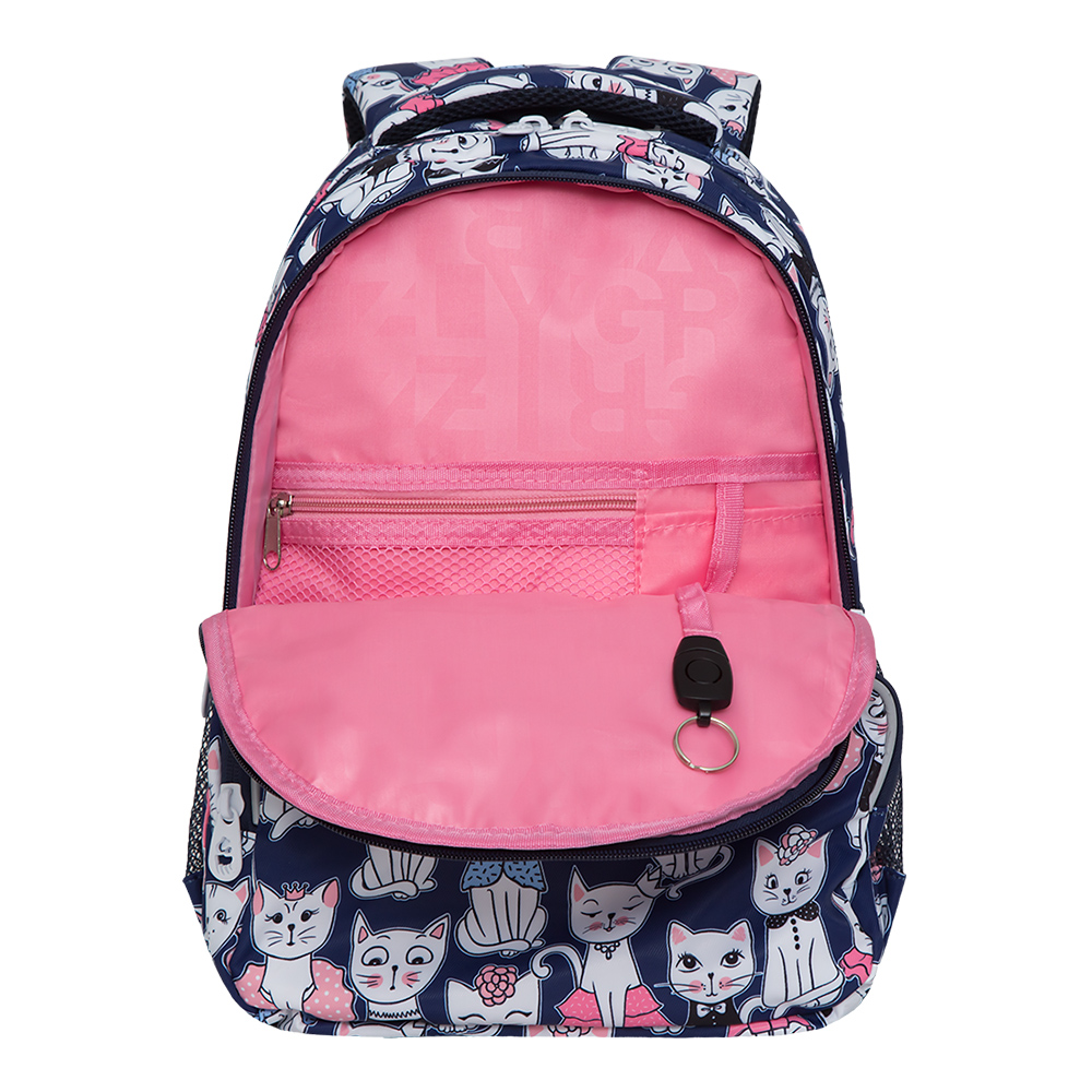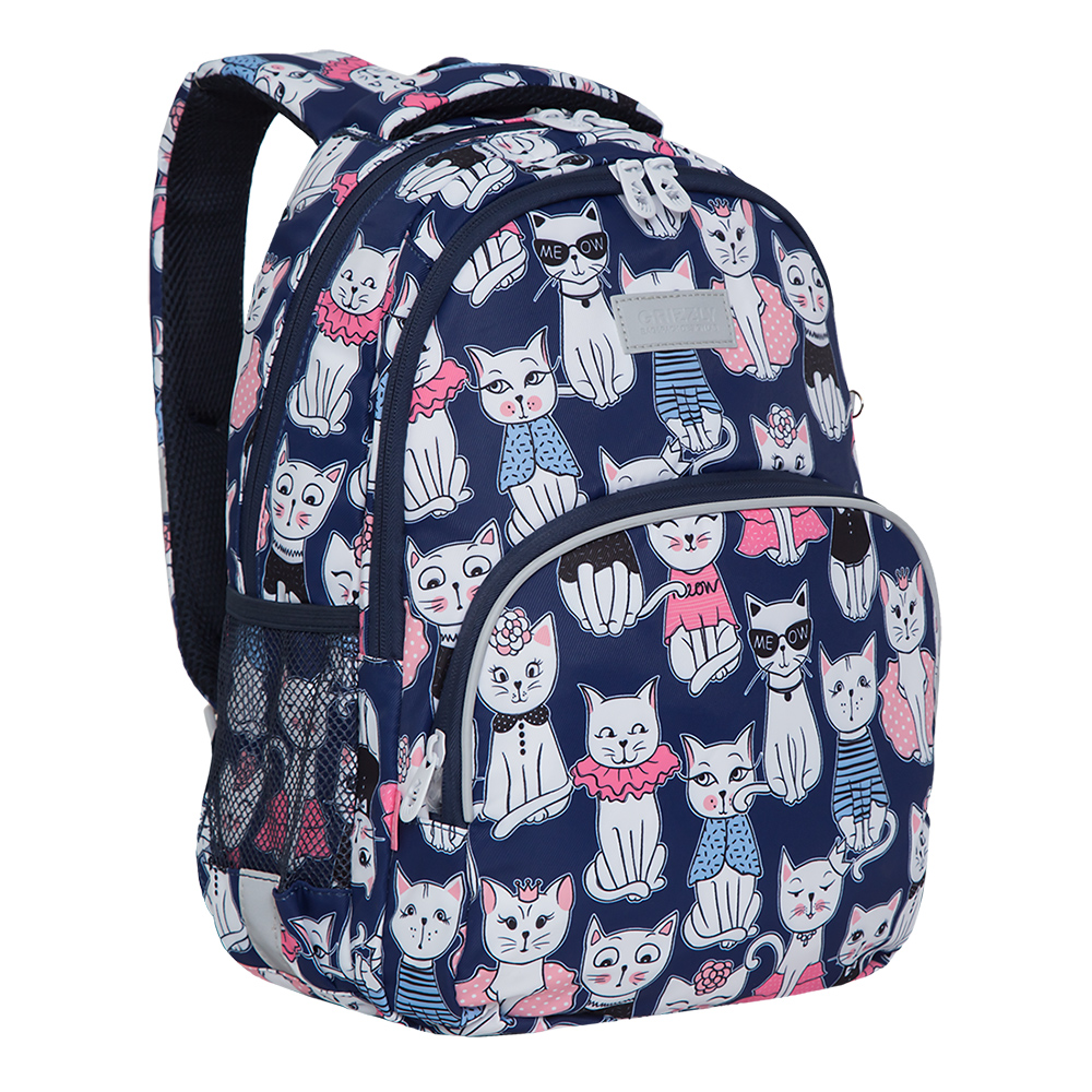Рюкзак разработан для учащихся начальной и средней школы. Анатомическая спинка, удобные лямки и нагрудная стяжка-фиксатор позволяют равномерно распределять нагрузку на спину и плечи. Материал рюкзака с водо- и грязеотталкивающей пропиткой. Рюкзак очень хорошо оснащен, имеет два вместительных отделения для учебных пособий форматом А4. В основном отделении есть карман для планшета или небольшого ноутбука 13". Дополнительное переднее отделение оснащено съемным держателем для ключей и тремя карманами. Двунаправленные реверсные молнии с брендированными пуллерами на замках позволяют легко открывать и закрывать рюкзак. У рюкзака внешний карман на молнии, удобная ручка для переноски, дополнительная ручка-петля и два боковых кармана для бутылочки с водой. Светоотражающие элементы с 4-х сторон обеспечивают дополнительную безопасность. К рюкзаку прилагается обучающая брошюра по программе «GRIZZLY Здоровая Спина».