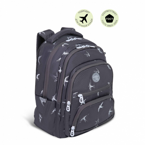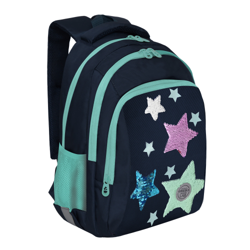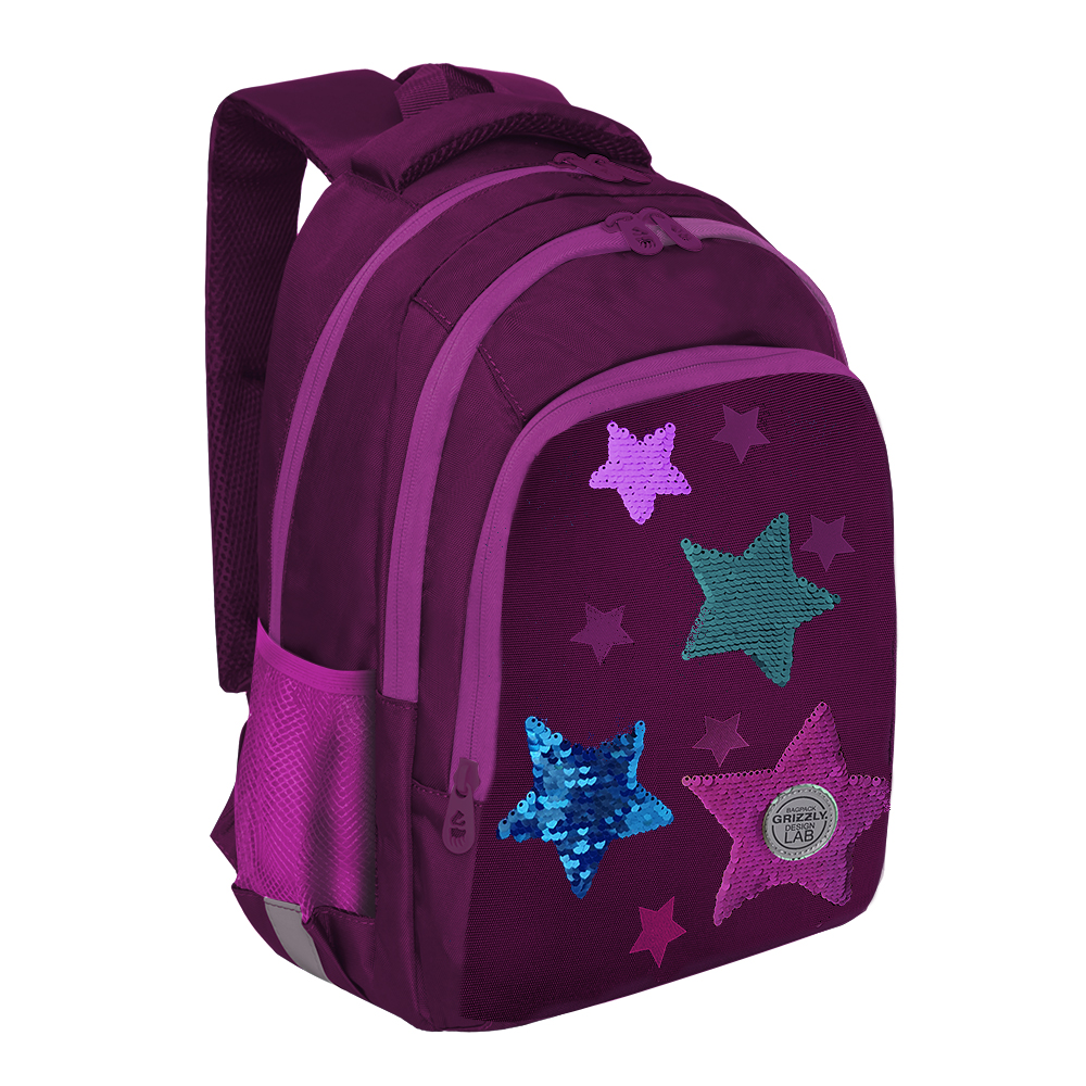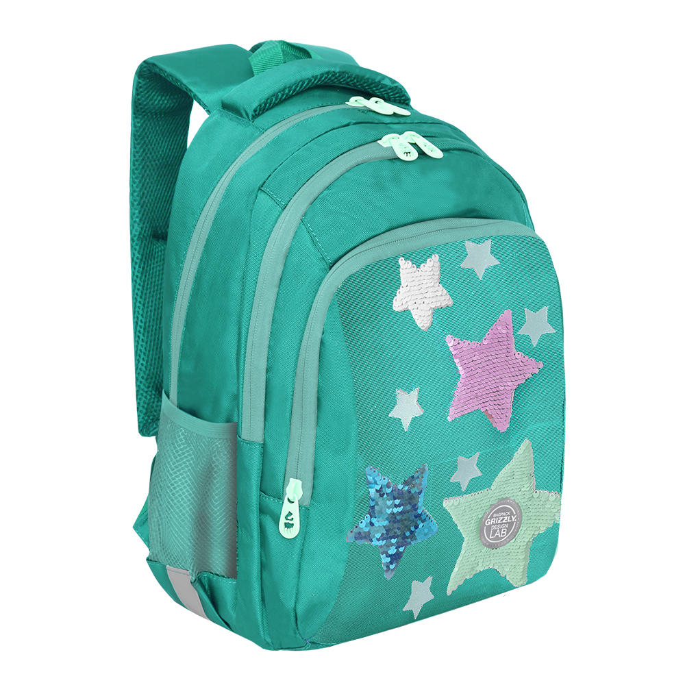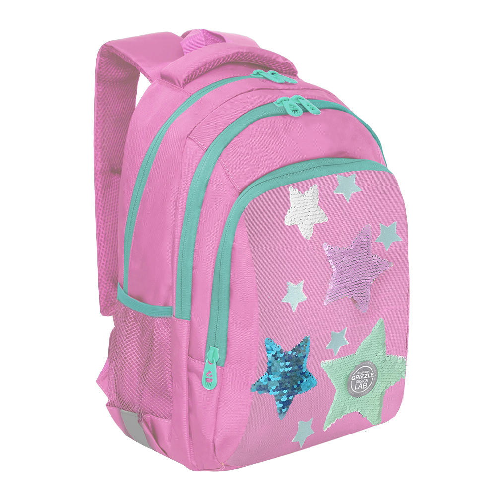 Рюкзак разработан для учащихся начальной и средней школы. Анатомическая спинка и удобные лямки позволяют равномерно распределять нагрузку на спину и плечи. Лямки снабжены дополнительной нагрудной стяжкой, чтобы рюкзак держался на зимней объемной одежде. Материал рюкзака с водо- и грязеотталкивающей пропиткой.  Рюкзак очень хорошо оснащен, имеет три отделения для учебных пособий форматом А4. В основном отделении есть карман для планшета или небольшого ноутбука 13". Дополнительное переднее отделение оснащено съемным держателем для ключей и тремя карманами. Также на спинке есть жесткий карман для папок. Двунаправленные реверсные молнии с брендированными пуллерами на замках позволяют легко открывать и закрывать рюкзак. У рюкзака удобная ручка для переноски, дополнительная ручка-петля и два боковых кармана для бутылочки с водой. Светоотражающие элементы с 4-х сторон обеспечивают дополнительную безопасность. К рюкзаку прилагается обучающая брошюра по программе «GRIZZLY Здоровая Спина».
