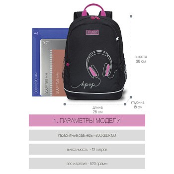 Рюкзак разработан для учащихся начальной и средней школы. Жесткая спинка и удобные лямки позволяют равномерно распределять нагрузку на спину и плечи. Материал рюкзака с водо- и грязеотталкивающей пропиткой. Рюкзак очень легкий, но при этом вместительный. В рюкзаке два отделения для учебных пособий форматом А4. В основном отделении есть карман для планшета или небольшого ноутбука 13". Двунаправленные реверсные молнии с брендированными пуллерами на замках позволяют легко открывать и закрывать рюкзак. У рюкзака удобная ручка для переноски и два боковых кармана для бутылочки с водой и разных мелочей. Светоотражающие элементы с 4-х сторон обеспечивают дополнительную безопасность. К рюкзаку прилагается обучающая брошюра по программе «GRIZZLY Здоровая Спина».