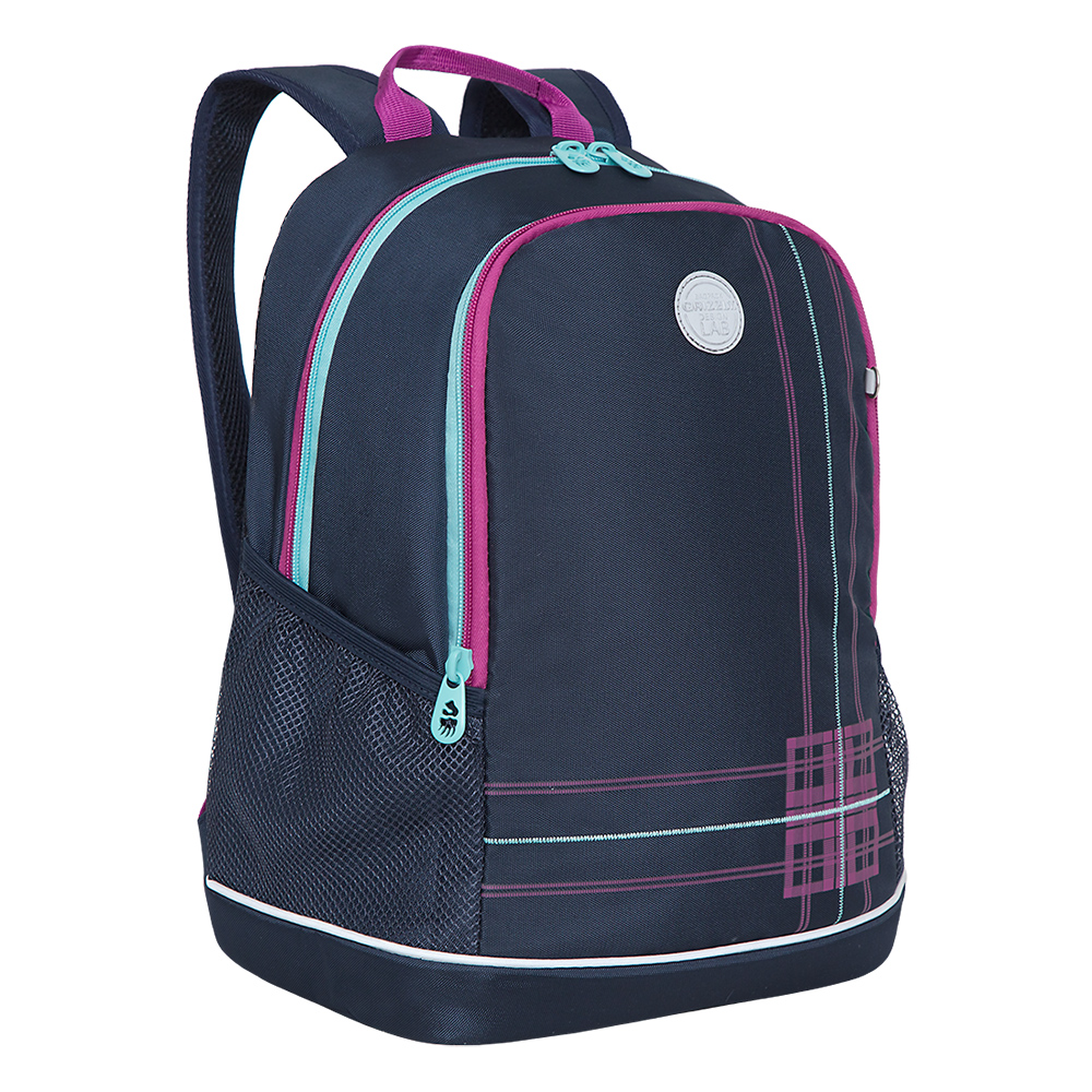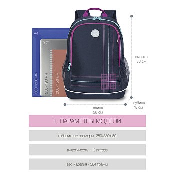 Рюкзак разработан для учащихся начальной и средней школы. Жесткая спинка и удобные лямки позволяют равномерно распределять нагрузку на спину и плечи. Материал рюкзака с водо- и грязеотталкивающей пропиткой. Рюкзак очень легкий, но при этом вместительный. В рюкзаке два отделения для учебных пособий форматом А4. В основном отделении есть карман для планшета или небольшого ноутбука 13". Двунаправленные реверсные молнии с брендированными пуллерами на замках позволяют легко открывать и закрывать рюкзак. У рюкзака удобная ручка для переноски и два боковых кармана для бутылочки с водой и разных мелочей. Светоотражающие элементы с 4-х сторон обеспечивают дополнительную безопасность. К рюкзаку прилагается обучающая брошюра по программе «GRIZZLY Здоровая Спина».