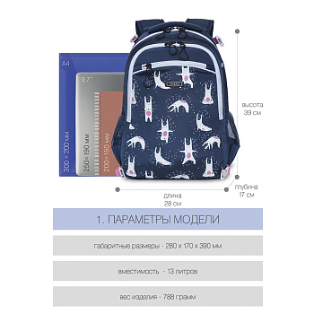 Рюкзак в комплекте с отстегивающимся мешком для обуви или спортивной формы разработан для учащихся начальной и средней школы. Анатомическая спинка и удобные лямки позволяют равномерно распределять нагрузку на спину и плечи. Материал рюкзака с водо- и грязеотталкивающей пропиткой.  Рюкзак очень хорошо оснащен, имеет два вместительных отделения для учебных пособий форматом А4. В основном отделении есть карман для планшета или небольшого ноутбука 13". В передний карман на молнии поместится куча мелочей. Двунаправленные реверсные молнии с брендированными пуллерами на замках позволяют легко открывать и закрывать рюкзак. У рюкзака удобная ручка для переноски и два боковых кармана для бутылочки с водой. В комплект входит дополнительный рюкзак-мешок для спортивной формы и сменной обуви, крепиться к рюкзаку специальными карабинами. Светоотражающие элементы с 4-х сторон обеспечивают дополнительную безопасность. К рюкзаку прилагается обучающая брошюра по программе «GRIZZLY Здоровая Спина».