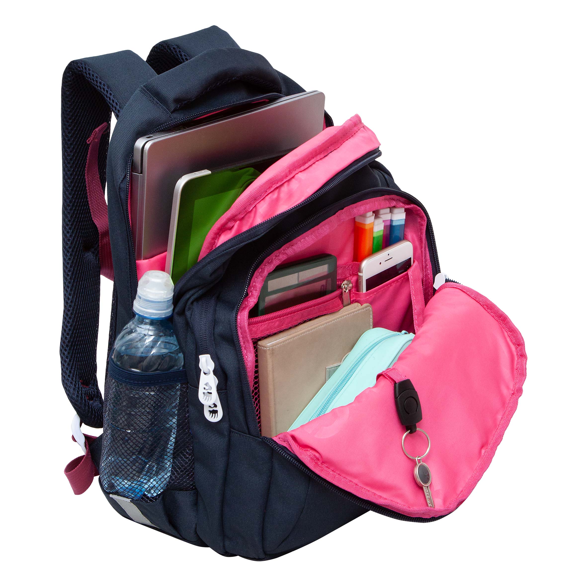 Рюкзак разработан для учащихся начальной и средней школы. Анатомическая спинка и удобные лямки позволяют равномерно распределять нагрузку на спину и плечи. Лямки снабжены дополнительной нагрудной стяжкой со свистком, чтобы рюкзак держался на зимней объемной одежде. Материал рюкзака с водо- и грязеотталкивающей пропиткой.  Рюкзак очень хорошо оснащен, имеет три отделения для учебных пособий форматом А4. В основном отделении есть карман для планшета или небольшого ноутбука 13". Дополнительное переднее отделение оснащено съемным держателем для ключей и тремя карманами. Двунаправленные реверсные молнии с брендированными пуллерами на замках позволяют легко открывать и закрывать рюкзак. У рюкзака удобная ручка для переноски, дополнительная ручка-петля и два боковых кармана для бутылочки с водой. Светоотражающие элементы с 4-х сторон обеспечивают дополнительную безопасность. К рюкзаку прилагается обучающая брошюра по программе «GRIZZLY Здоровая Спина».