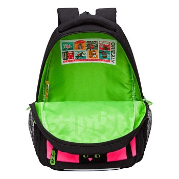 Стильные школьные рюкзаки GRIZZLY мы разработали специально для учащихся начальной и средней школы ростом от 125 до 140 см. Модель объемная — 15,5 л. Внутри помещается много вещей. Для них предусмотрено 3 отделения и много карманов: для ноутбука 13”, папок и пособий  формата А4, канцелярских и других принадлежностей. Снаружи 2 боковых кармана для зонта и бутылки с водой. Ребенок раскладывает все по своим местам и внутри поддерживается идеальный порядок.