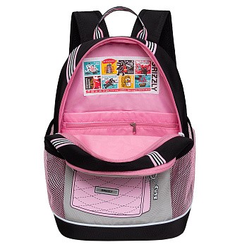 Эта серия школьных детских рюкзаков GRIZZLY подходит для девочек от 7 лет ростом от 125 до 140 см. Рюкзаки отлично подойдут как для школы, так и прогулок и посещения секций. Они легкие и вместительные. В рюкзаке два отделения для учебных пособий форматом А4. В основном отделении есть дополнительный внутренний карман для папок и ноутбука до 13" . Боковые кармашки для воды. Все что нужно лежит на своих местах. Жесткая спинка и удобные лямки позволяют равномерно распределять нагрузку на спину и плечи, ребенок меньше устает. Для безопасности в темное время суток мы добавили со всех сторон светоотражающие элементы. Материал рюкзака с водо- и грязеотталкивающей пропиткой. Если рюкзак все же чем-то испачкался, мы рекомендуем ручную стирку в холодной воде. В серии этих рюкзаков много разных модных принтов, которые обязательно понравятся девочкам. Осталось выбрать подходящий для Вас дизайн и добавить в корзину. С уважением, команда GRIZZLY