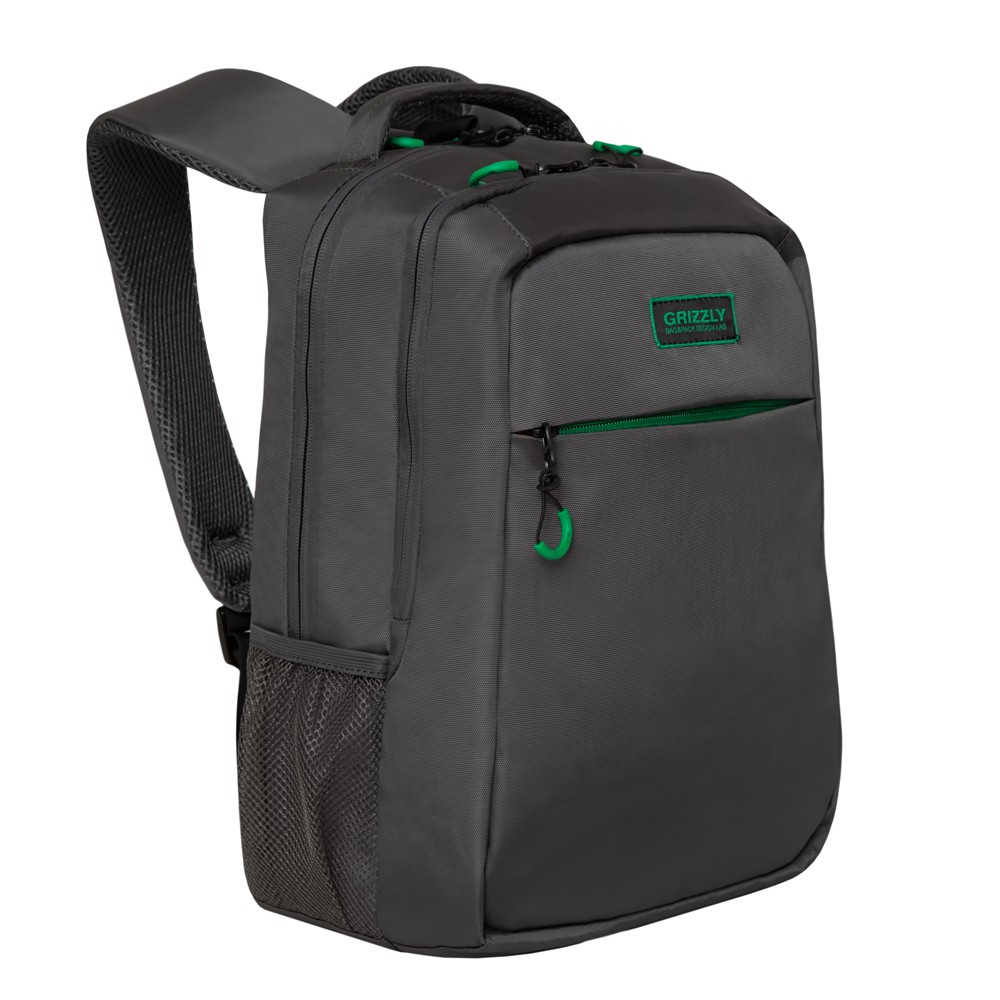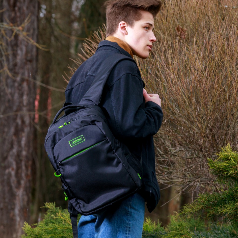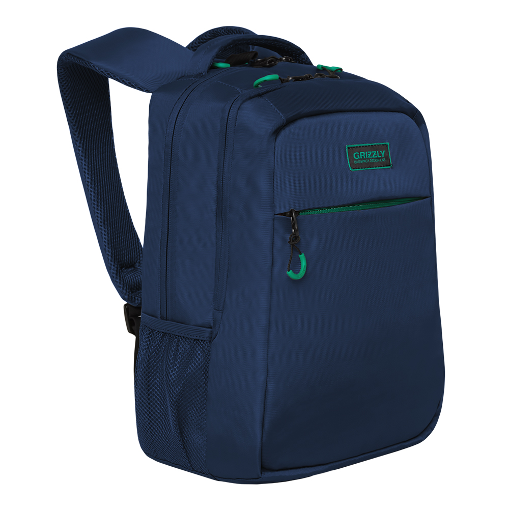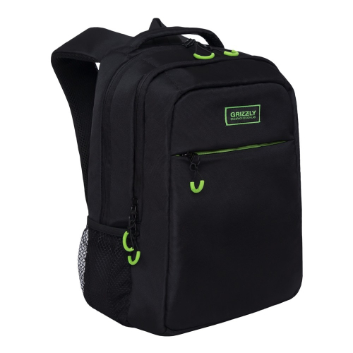 Школьный рюкзак GRIZZLY, два отделения, карман на молнии на передней стенке, боковые карманы из сетки, внутренний карман для электронных устройств, внутренний составной пенал-органайзер, внутренний держатель для ключей - фастекс, жесткая анатомическая спинка, мягкая укрепленная ручка, нагрудная стяжка-фиксатор, светоотражающие элементы с четырех сторон
