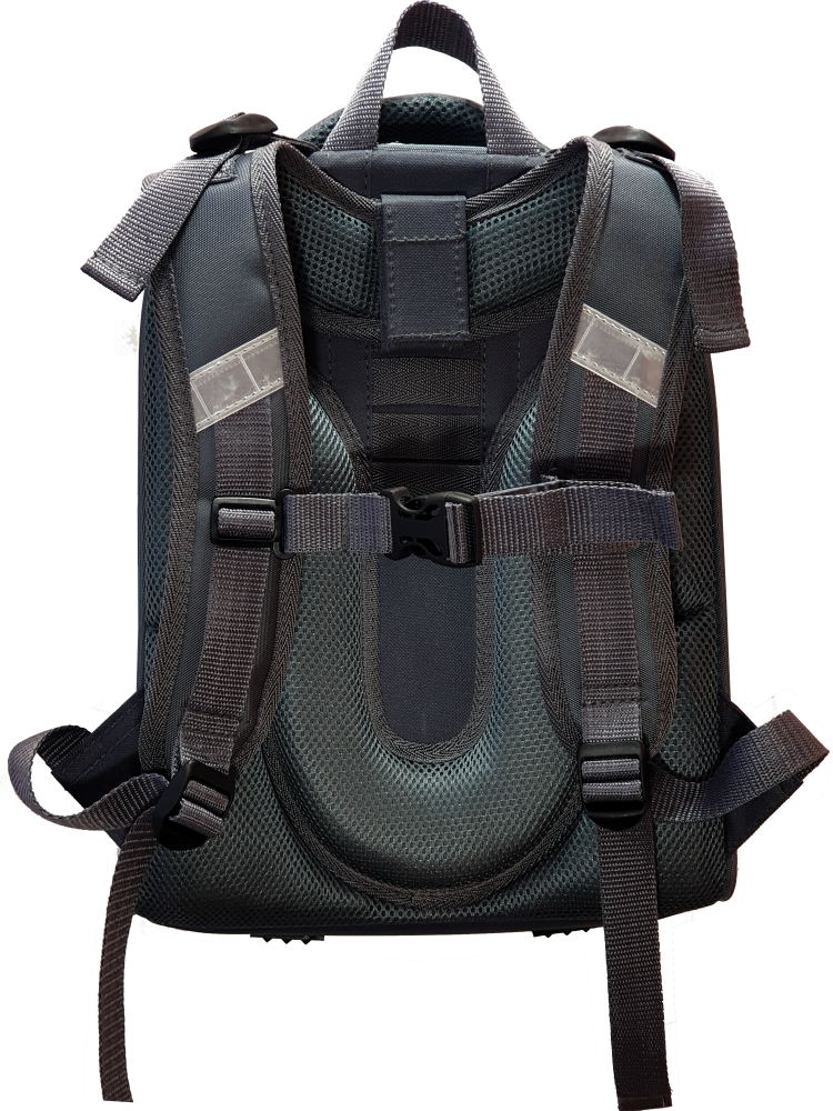Ранец изготовлен из формованного EVA-материала и высокопрочного непромокаемого полиэстера. Размер 30 х 38 х 16 см. Вес 900 г. Прочные формованные стенки и дно ранца позволяют надежно защитить содержимое от влаги, загрязнений и предотвращают его замятие. Ранец с двумя вместительными отделениями, закрывающимися на реверсивную пластиковую молнию с металлическими «бегунками»; в первом — «плавающие» перегородки для тетрадей и учебников, во втором – большой карман из сетки и карманы-органайзеры для канцелярских принадлежностей. Плотная спинка с анатомическими элементами дополнительно укреплена пластиком, сверху – дышащая трехслойная сетка. Лямки-маечка плотные, мягкие. Регулируются по длине и высоте, что позволяет без труда отрегулировать их по росту ребенка. Ранец снабжен надежным нагрудным фиксатором. Есть удобная мягкая ручка для переноски и дополнительная петлевая ручка для размещения ранца на крюке. На дне ранца есть две пластиковые ножки. В соответствии с требованиями к безопасности на дороге, ранец имеет светоотражающие элементы на лямках и корпусе.
