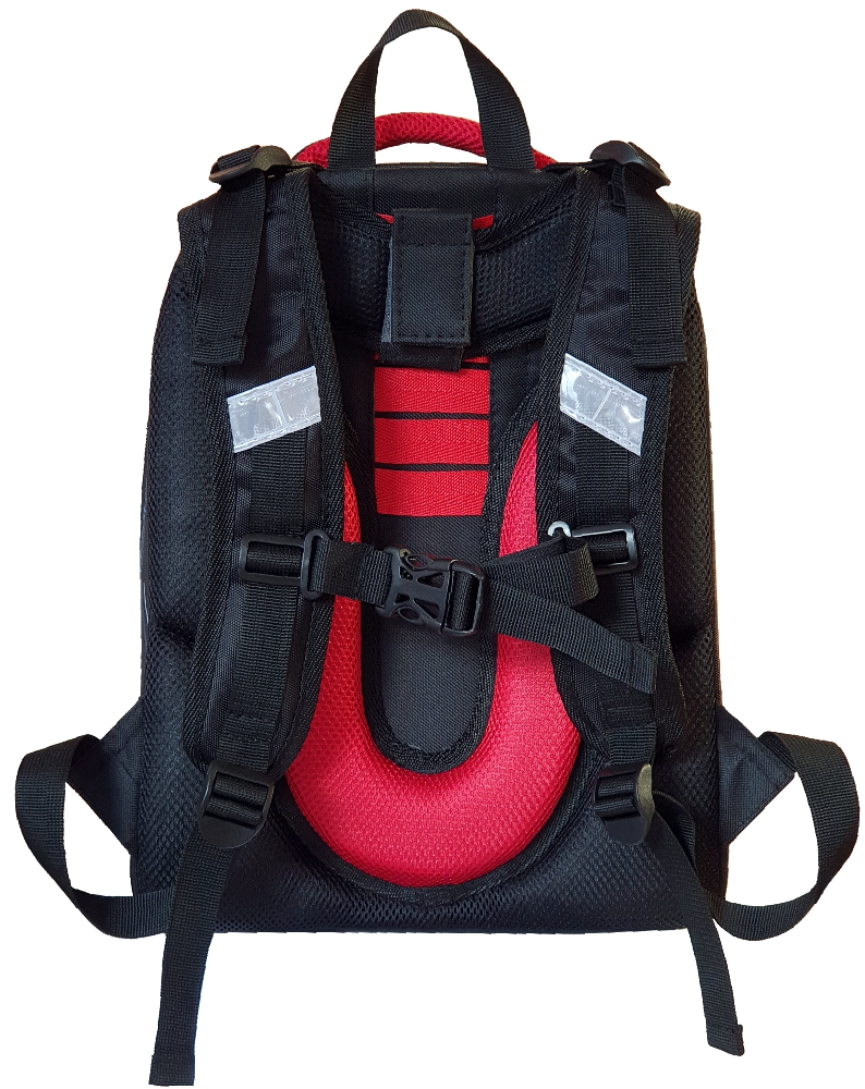 Ранец изготовлен из формованного EVA-материала и высокопрочного непромокаемого полиэстера. Размер 30 х 38 х 16 см. Вес 900 г. Прочные формованные стенки и дно ранца позволяют надежно защитить содержимое от влаги, загрязнений и предотвращают его замятие. Ранец с двумя вместительными отделениями, закрывающимися на реверсивную пластиковую молнию с металлическими «бегунками»; в первом — «плавающие» перегородки для тетрадей и учебников, во втором – большой карман из сетки и карманы-органайзеры для канцелярских принадлежностей. Плотная спинка с анатомическими элементами дополнительно укреплена пластиком, сверху – дышащая трехслойная сетка. Лямки-маечка плотные, мягкие. Регулируются по длине и высоте, что позволяет без труда отрегулировать их по росту ребенка. Ранец снабжен надежным нагрудным фиксатором. Есть удобная мягкая ручка для переноски и дополнительная петлевая ручка для размещения ранца на крюке. На дне ранца есть две пластиковые ножки. В соответствии с требованиями к безопасности на дороге, ранец имеет светоотражающие элементы на лямках и корпусе.