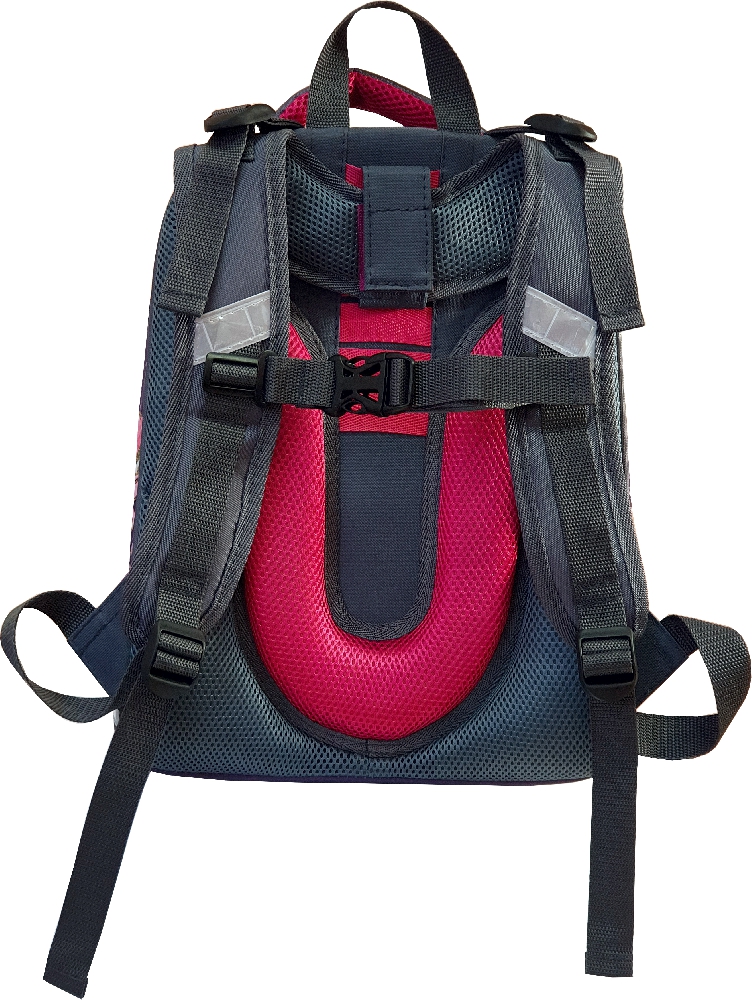 Ранец изготовлен из формованного EVA-материала и высокопрочного непромокаемого полиэстера. Размер 30 х 38 х 16 см. Вес 900 г. Прочные формованные стенки и дно ранца позволяют надежно защитить содержимое от влаги, загрязнений и предотвращают его замятие. Ранец с двумя вместительными отделениями, закрывающимися на реверсивную пластиковую молнию с металлическими «бегунками»; в первом — «плавающие» перегородки для тетрадей и учебников, во втором – большой карман из сетки и карманы-органайзеры для канцелярских принадлежностей. Плотная спинка с анатомическими элементами дополнительно укреплена пластиком, сверху – дышащая трехслойная сетка. Лямки-маечка плотные, мягкие. Регулируются по длине и высоте, что позволяет без труда отрегулировать их по росту ребенка. Ранец снабжен надежным нагрудным фиксатором. Есть удобная мягкая ручка для переноски и дополнительная петлевая ручка для размещения ранца на крюке. На дне ранца есть две пластиковые ножки. В соответствии с требованиями к безопасности на дороге, ранец имеет светоотражающие элементы на лямках и корпусе.