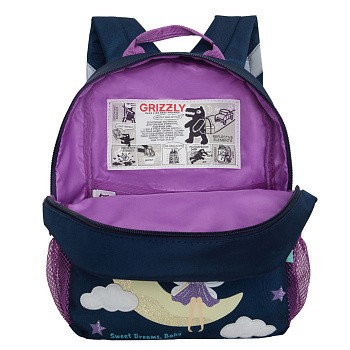 Стильный, легкий и практичный рюкзак Grizzly станет незаменимым аксессуаром для ребенка. С ним очень удобно ходить в садик или на развивающие кружки, ездить в гости или просто брать его на прогулку. В рюкзак поместиться все необходимое: и блокнот, и игрушка, и контейнер с едой. А специальный карман из сетки с резинкой не даст рассыпаться карандашам и фломастерам или сломаться хрупким предметам. Впереди есть карман на молнии для разных мелочей, а в боковые карманы можно поместить бутылку с водой. Имея такой аксессуар, ребенок быстрее приучится к порядку. Мягкая спинка, регулируемые лямки и нагрудная стяжка со свистком делают рюкзак очень комфортным, а светоотражающие элементы со всех сторон обеспечивают дополнительную безопасность  в условиях недостаточной видимости.  Свисток можно использовать как для игры, так и для дополнительной безопасности. Материал с водо- и грязеотталкивающей пропиткой.  Есть ручка для переноски. Рюкзак можно стирать в стиральной машине.