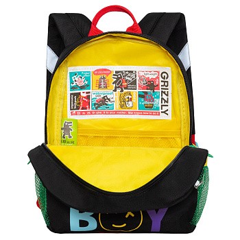 Стильный, легкий и практичный рюкзак Grizzly станет незаменимым аксессуаром для ребенка. С ним очень удобно ходить в садик или на развивающие кружки, ездить в гости или просто брать его на прогулку. В рюкзак поместиться все необходимое: и блокнот, и игрушка, и контейнер с едой. А специальный карман из сетки с резинкой не даст рассыпаться карандашам и фломастерам или сломаться хрупким предметам. Впереди есть карман на молнии для разных мелочей, а в боковые карманы можно поместить бутылку с водой. Имея такой аксессуар, ребенок быстрее приучится к порядку. Мягкая спинка, регулируемые лямки и нагрудная стяжка со свистком делают рюкзак очень комфортным, а светоотражающие элементы со всех сторон обеспечивают дополнительную безопасность  в условиях недостаточной видимости.  Свисток можно использовать как для игры, так и для дополнительной безопасности. Материал с водо- и грязеотталкивающей пропиткой.  Есть ручка для переноски. Рюкзак можно стирать в стиральной машине.