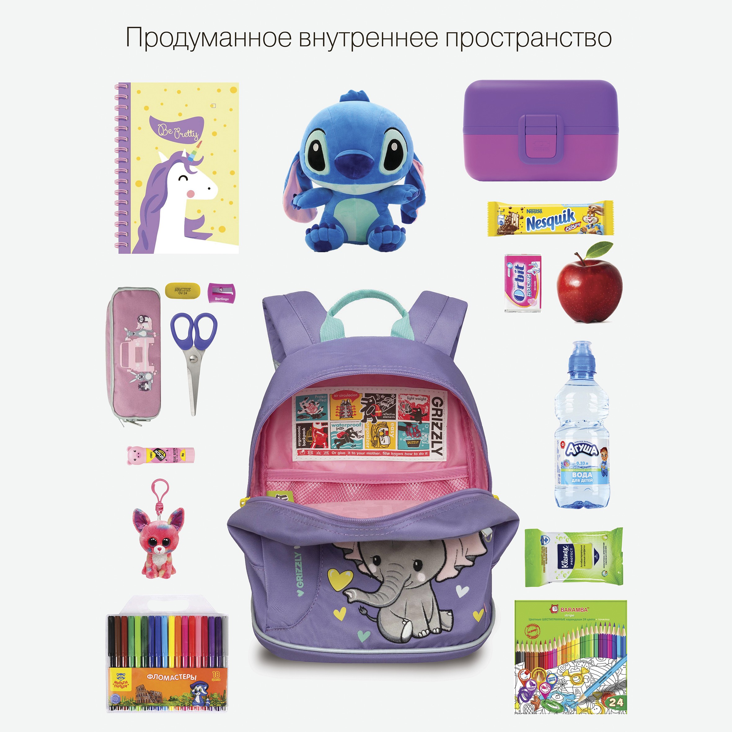 Стильный, легкий и практичный рюкзак Grizzly не оставит равнодушным ни одного ребенка. С ним очень удобно ходить в садик или на развивающие кружки, ездить в гости или просто брать его на прогулку. В рюкзак поместиться все необходимое: и блокнот, и игрушка, и контейнер с едой. А специальный карман из сетки с резиночкой не даст рассыпаться карандашам и фломастерам или сломаться хрупким предметам. Впереди есть кармашек на молнии для разных мелочей.  Имея такой аксессуар, ребенок быстрее приучится к порядку и ответственности за свои вещи. Мягкая спинка, регулируемые лямки и нагрудная стяжка-фиксатор со свистком делают рюкзачок очень комфортным, а светоотражающие элементы со всех сторон обеспечивают дополнительную безопасность  в условиях недостаточной видимости. Свисток можно использовать как для игры, так и для дополнительной безопасности. Материал с водо- и грязеотталкивающей пропиткой.  Есть ручка для переноски. Рюкзак можно стирать в стиральной машине.