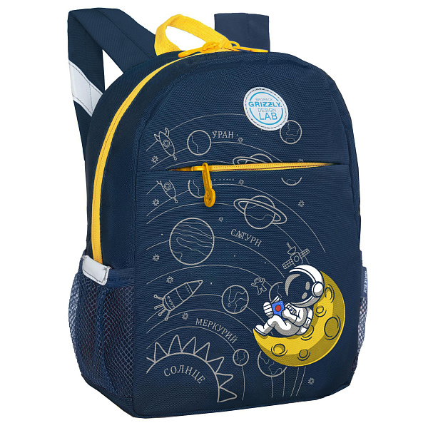 Стильный, легкий и практичный рюкзак Grizzly станет незаменимым аксессуаром для ребенка. С ним очень удобно ходить в садик или на развивающие кружки, ездить в гости или просто брать его на прогулку. В рюкзак поместиться все необходимое: и блокнот, и игрушка, и контейнер с едой. А специальный карман из сетки с резинкой не даст рассыпаться карандашам и фломастерам или сломаться хрупким предметам. Впереди есть карман на молнии для разных мелочей, а в боковые карманы можно поместить бутылку с водой. Имея такой аксессуар, ребенок быстрее приучится к порядку. Мягкая спинка, регулируемые лямки и нагрудная стяжка со свистком делают рюкзак очень комфортным, а светоотражающие элементы со всех сторон обеспечивают дополнительную безопасность  в условиях недостаточной видимости.  Свисток можно использовать как для игры, так и для дополнительной безопасности. Материал с водо- и грязеотталкивающей пропиткой.  Есть ручка для переноски. Рюкзак можно стирать в стиральной машине.