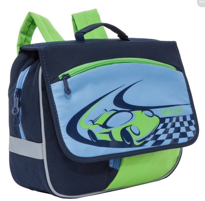 Детский рюкзак GRIZZLY, одно отделение, клапан на липучках с карманом на молнии, карман на молнии на передней стенке, внутренний карман, укрепленная спинка, ручка на жесткой планке, укрепленные лямки, светоотражающие элементы с четырех сторон