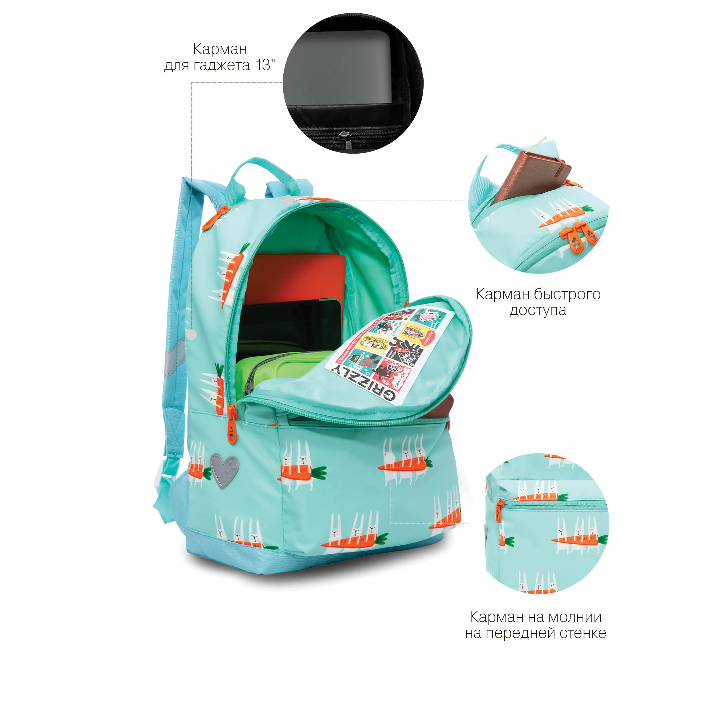 Мы знаем, что школьники посещают много разных секций и кружков, поэтому мы разработали специальный легкий рюкзак GRIZZLY для внешкольных занятий. Он рассчитан на рост от 125 до 140 см. Рюкзак небольшой, но при этом очень вместительный — внутри помещается все, что может понадобиться на занятиях. Ребенку не придется разбирать свой основной рюкзак и собирать его для посещения секций. У рюкзака одно вместительное отделение для папок формата А4, тетрадей, книг и карман для ноутбука до 13".  Есть карман быстрого доступа для мелочей и кошелька. Для безопасности в темное время суток  мы добавили со всех сторон светоотражающие элементы. Материал рюкзака с водо- и грязеотталкивающей пропиткой. Если рюкзак все же чем-то испачкался, мы рекомендуем ручную стирку в холодной воде. В серии этих рюкзаков много разных модных принтов, которые обязательно понравятся девочкам. Осталось выбрать подходящий для Вас дизайн и добавить в корзину. С уважением, команда GRIZZLY