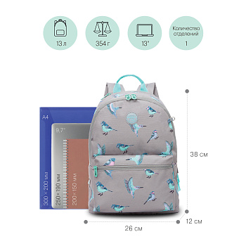 Мы знаем, что школьники посещают много разных секций и кружков, поэтому мы разработали специальный легкий рюкзак GRIZZLY для внешкольных занятий. Он рассчитан на рост от 125 до 140 см. Рюкзак небольшой, но при этом очень вместительный — внутри помещается все, что может понадобиться на занятиях. Ребенку не придется разбирать свой основной рюкзак и собирать его для посещения секций. У рюкзака одно вместительное отделение для папок формата А4, тетрадей, книг и карман для ноутбука до 13".  Есть карман быстрого доступа для мелочей и кошелька. Для безопасности в темное время суток  мы добавили со всех сторон светоотражающие элементы. Материал рюкзака с водо- и грязеотталкивающей пропиткой. Если рюкзак все же чем-то испачкался, мы рекомендуем ручную стирку в холодной воде. В серии этих рюкзаков много разных модных принтов, которые обязательно понравятся девочкам. Осталось выбрать подходящий для Вас дизайн и добавить в корзину. С уважением, команда GRIZZLY