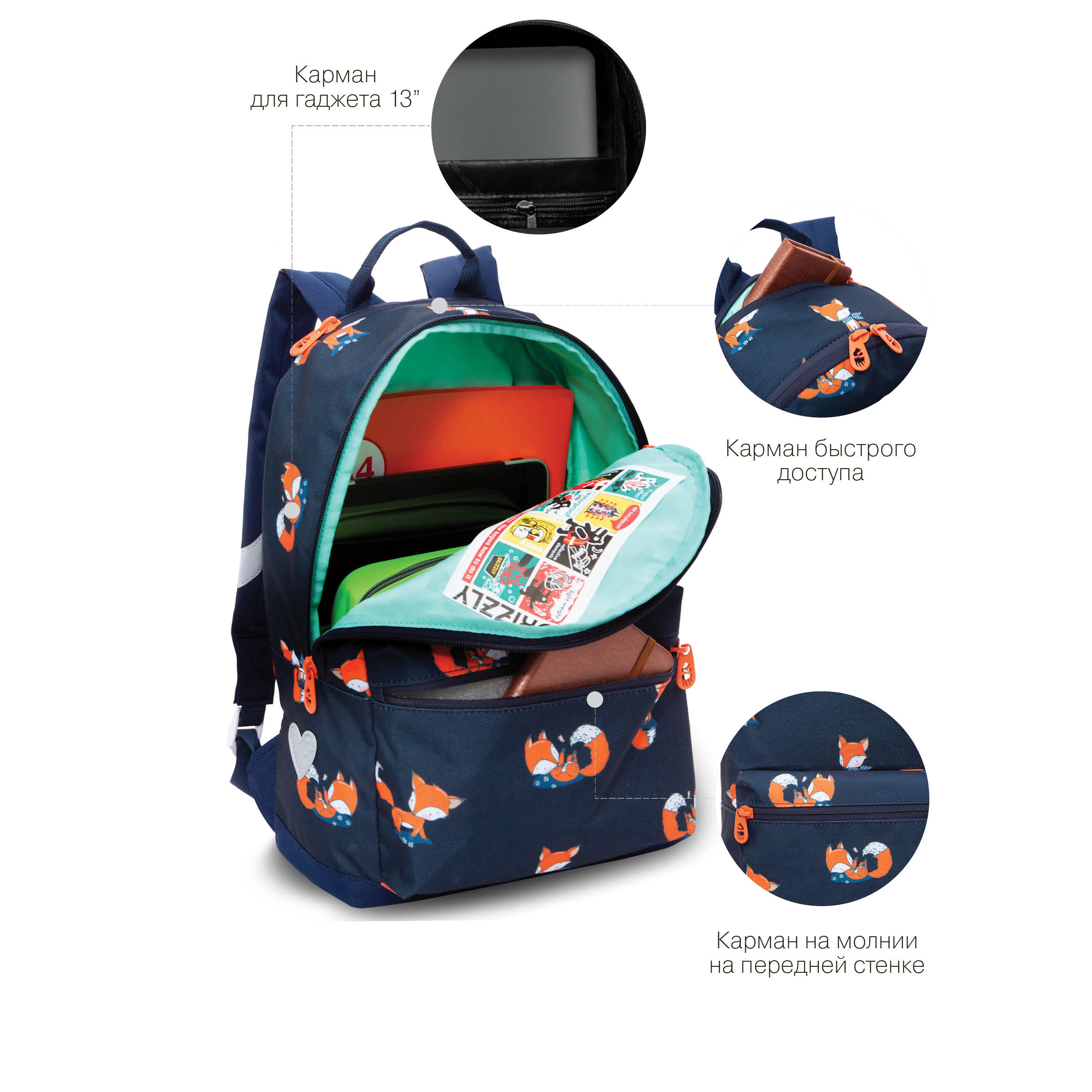 Мы знаем, что школьники посещают много разных секций и кружков, поэтому мы разработали специальный легкий рюкзак GRIZZLY для внешкольных занятий. Он рассчитан на рост от 125 до 140 см. Рюкзак небольшой, но при этом очень вместительный — внутри помещается все, что может понадобиться на занятиях. Ребенку не придется разбирать свой основной рюкзак и собирать его для посещения секций. У рюкзака одно вместительное отделение для папок формата А4, тетрадей, книг и карман для ноутбука до 13".  Есть карман быстрого доступа для мелочей и кошелька. Для безопасности в темное время суток  мы добавили со всех сторон светоотражающие элементы. Материал рюкзака с водо- и грязеотталкивающей пропиткой. Если рюкзак все же чем-то испачкался, мы рекомендуем ручную стирку в холодной воде. В серии этих рюкзаков много разных модных принтов, которые обязательно понравятся девочкам. Осталось выбрать подходящий для Вас дизайн и добавить в корзину. С уважением, команда GRIZZLY