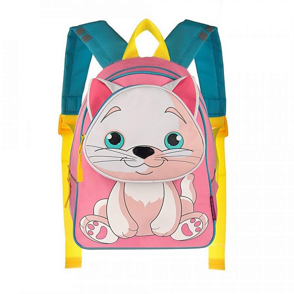 Но рюкзак не только яркий и привлекательный, а еще и вместительный. Складываем в основное отделение сменку для спортивных кружков, и она не помнется. За веселой мордочкой есть еще одно отделение — для мелочей. Все свои вещи ребенок носит сам.