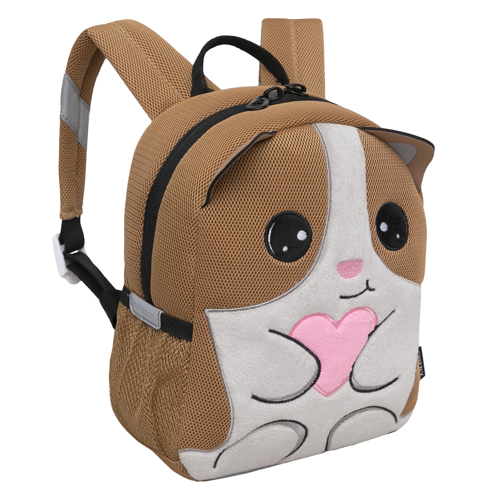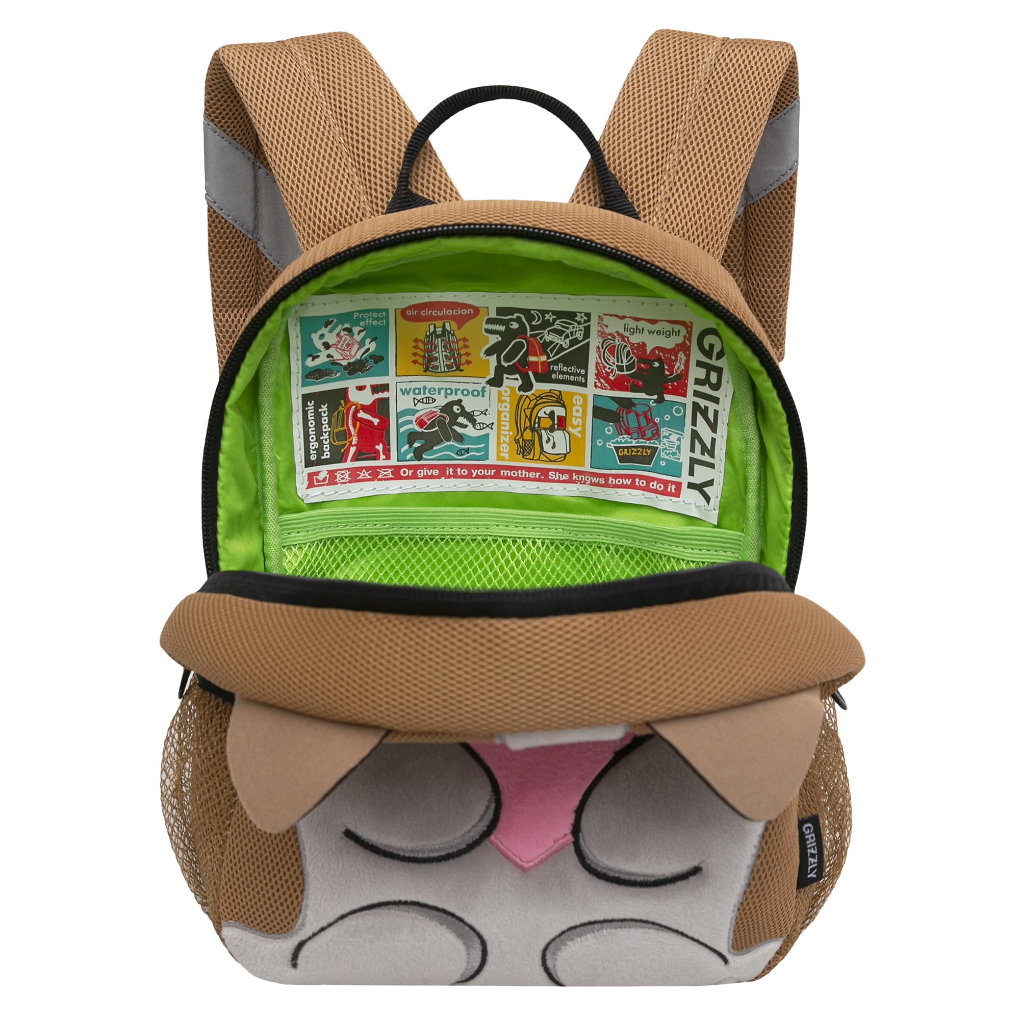 Легкий детский рюкзачок Grizzly наверняка станет верным и незаменимым спутником для Вашего малыша. С таким рюкзачком можно ходить в детский сад, на прогулку, в гости, а можно использовать его в качестве игрушки. У рюкзака одно отделение на молнии, в которое легко поместятся и карандаши, и фломастеры, и небольшой блокнот, и любимая игрушка, а внутренний кармашек из сетки с резиночкой позволит  поддержать порядок внутри рюкзачка. В кармашки сбоку можно положить бутылочку с водой. Есть ручка-петля для переноски. Мягкая спинка, регулируемые лямки и фастекс со свистком делают рюкзачок очень комфортным. Свисток можно использовать как для игры, так и для дополнительной безопасности. Также мы добавили со всех сторон светоотражающие элементы для безопасности в темное время суток. За счет водо- и грязеотталкивающей пропитки он долго остается как новый. Если рюкзак все же чем-то испачкался, мы рекомендуем ручную стирку в холодной воде.