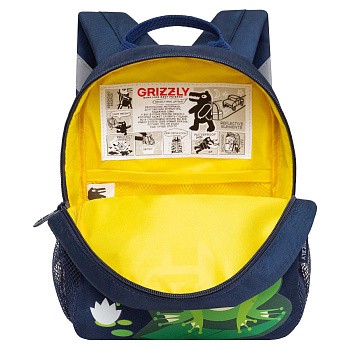Легкий детский рюкзак Grizzly наверняка станет верным и незаменимым спутником для Вашего малыша. С таким рюкзаком можно ходить в детский сад, на прогулку, в гости. У него одно отделение на молнии, в которое легко поместятся и карандаши, и фломастеры, и небольшой блокнот, и любимая игрушка, а внутренний карман из сетки с резинкой позволит  поддержать порядок внутри рюкзака. В боковые карманы можно положить бутылку с водой. Мягкая спинка и регулируемые лямки делают рюкзак очень комфортным. Материал с водо- и грязеотталкивающей пропиткой.  Есть ручка-петля для переноски. Рюкзак можно стирать в стиральной машине.