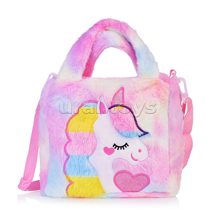 Пушистая сумочка в виде единорога для девочки с ремешком