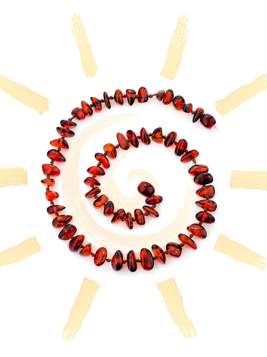 Яркие детские бусы из натурального балтийского янтаря «Галька вишнёвая»