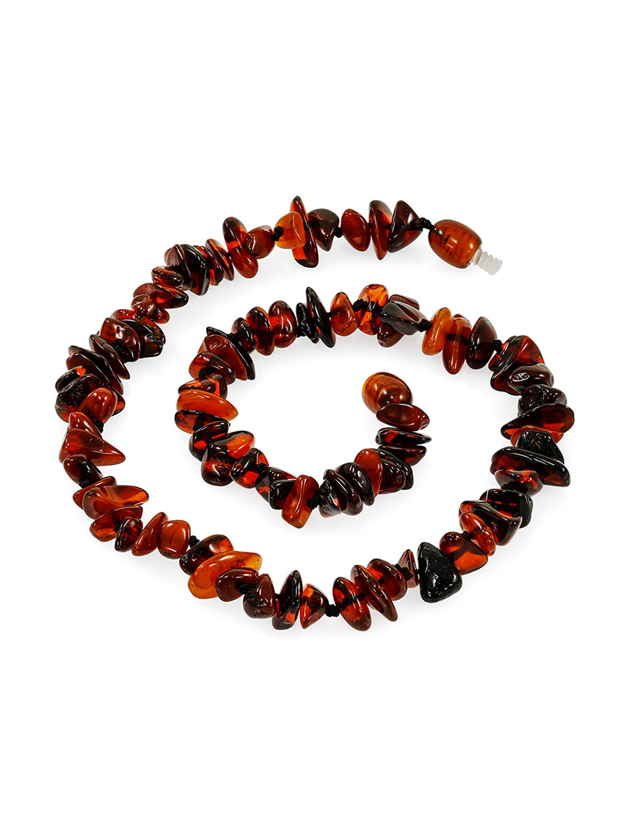Яркое ожерелье для детей из натурального янтаря «Чипсы вишнёвые»
