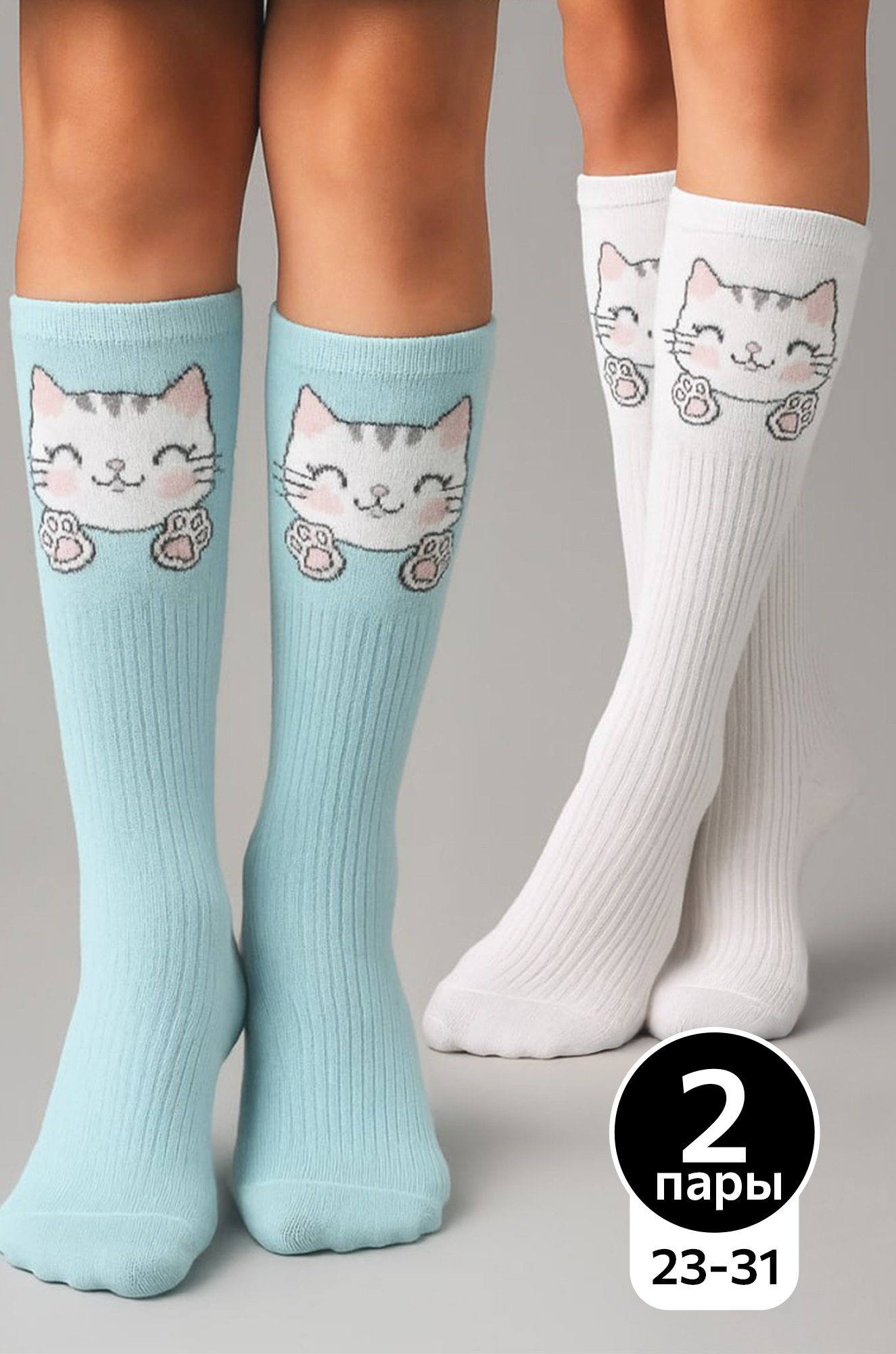 Гольфы с рисунком Котик для девочки — ..показатьнежный акцент для стильного гардероба. В комплекте 2 пары ментолового и белого цвета — универсальное сочетание для повседневных и нарядных образов.