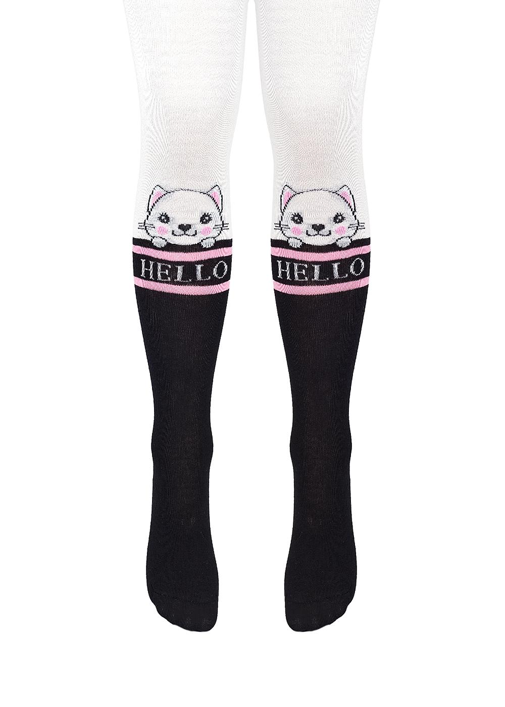 колготки для девочки с имитацией гольф, с рисунком кошки