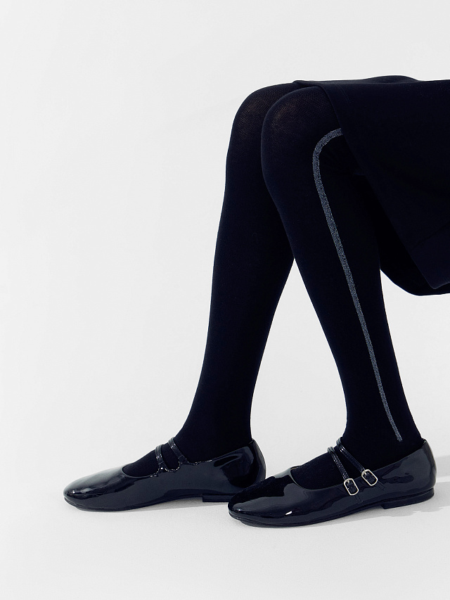 Детские черные колготки с люрексными лампасами