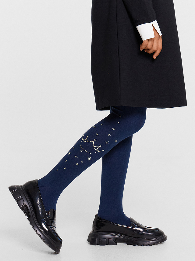 Детские колготки темно-синего цвета с принтом короной