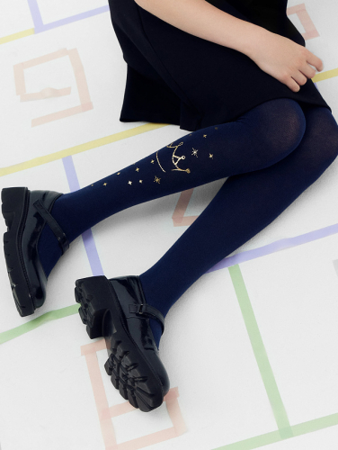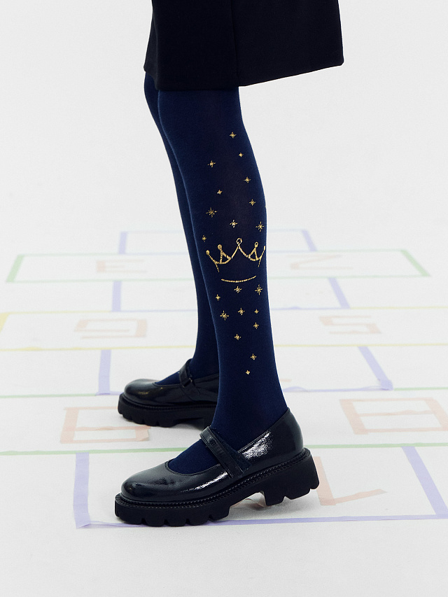 Детские колготки темно-синего цвета с принтом короной