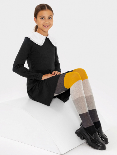 Колготки махровые с рисунком в виде поперечных полосок. Продуманная конструкция: колготки не скатываются, плотно облегают ножку, не сдавливают в талии, но отлично держит колготки даже на самых активных детях. Стильно и комфортно!